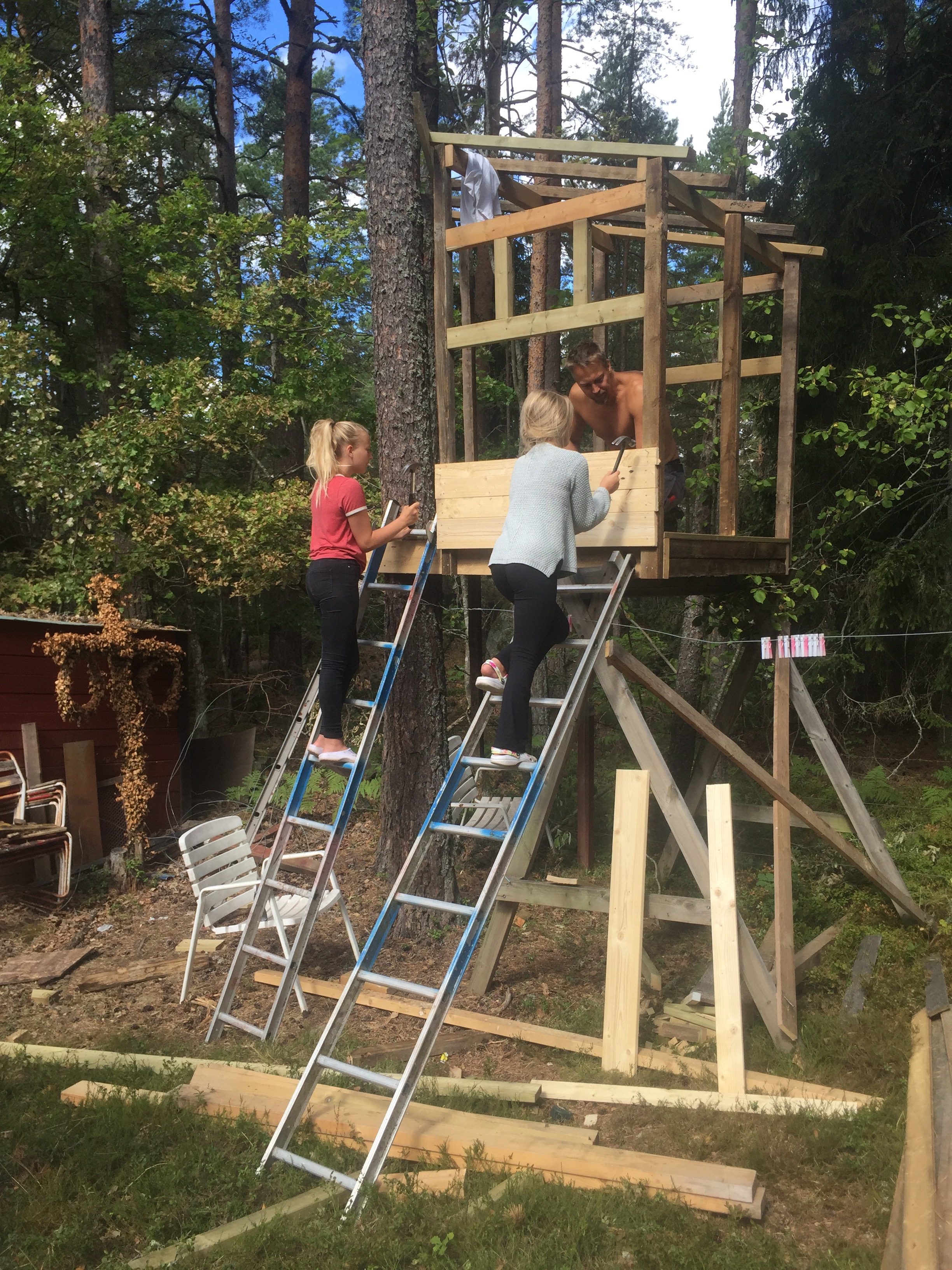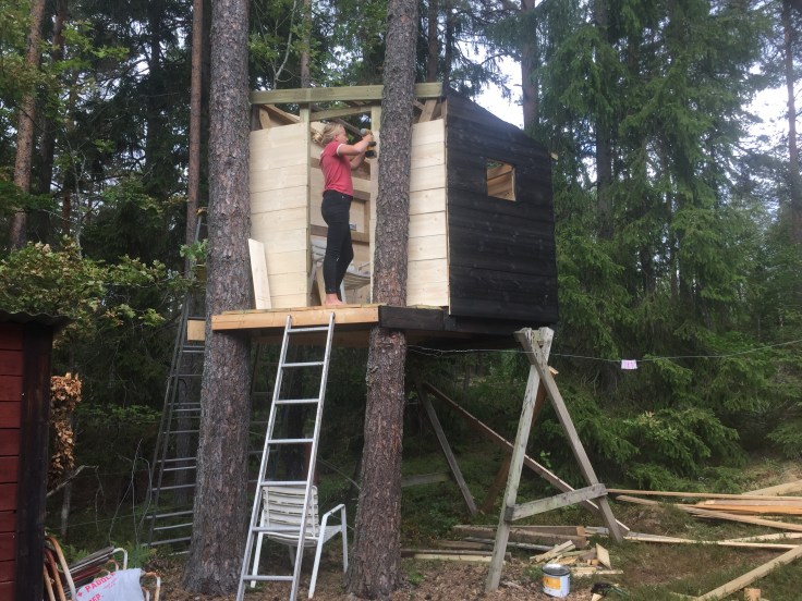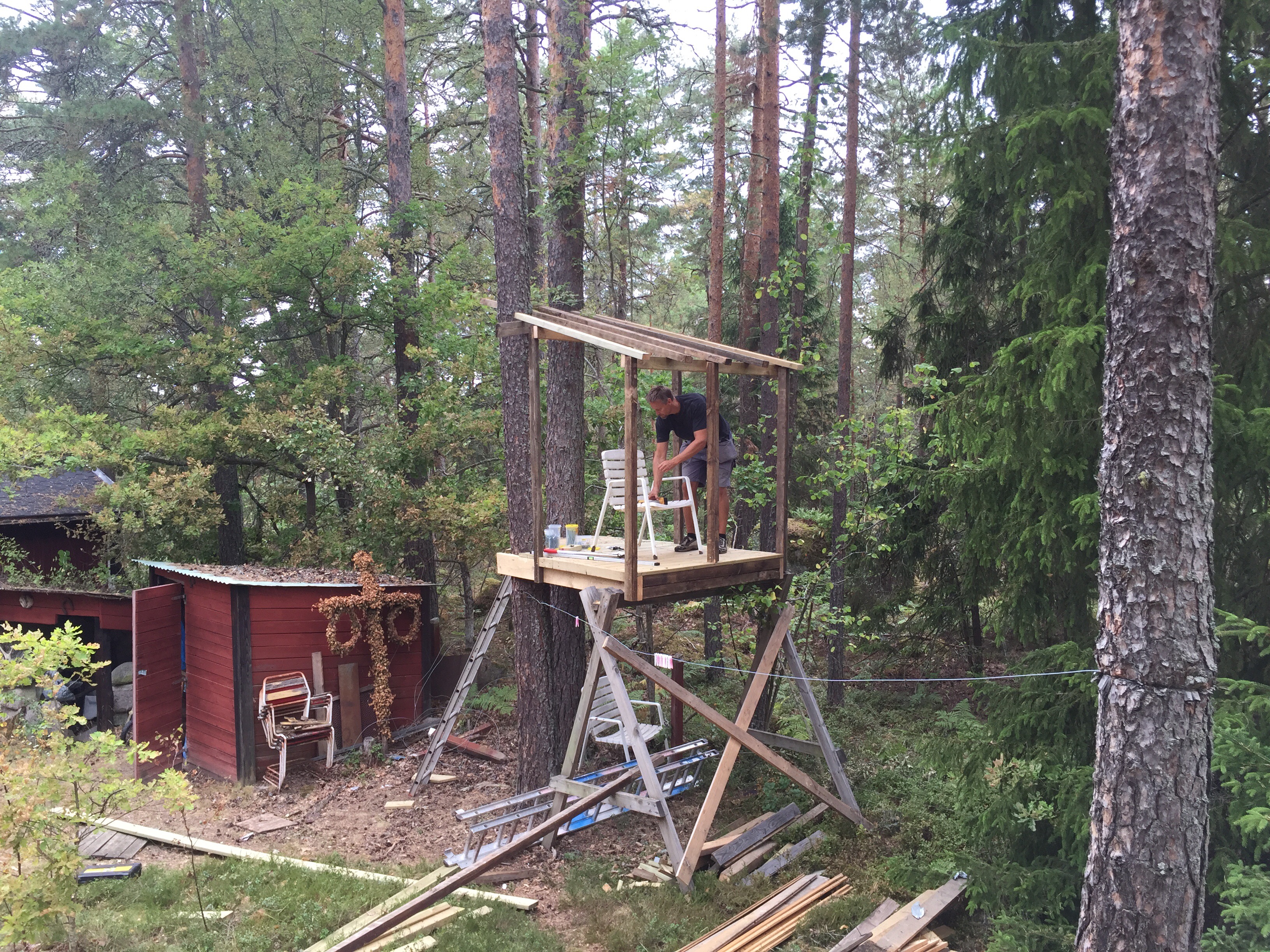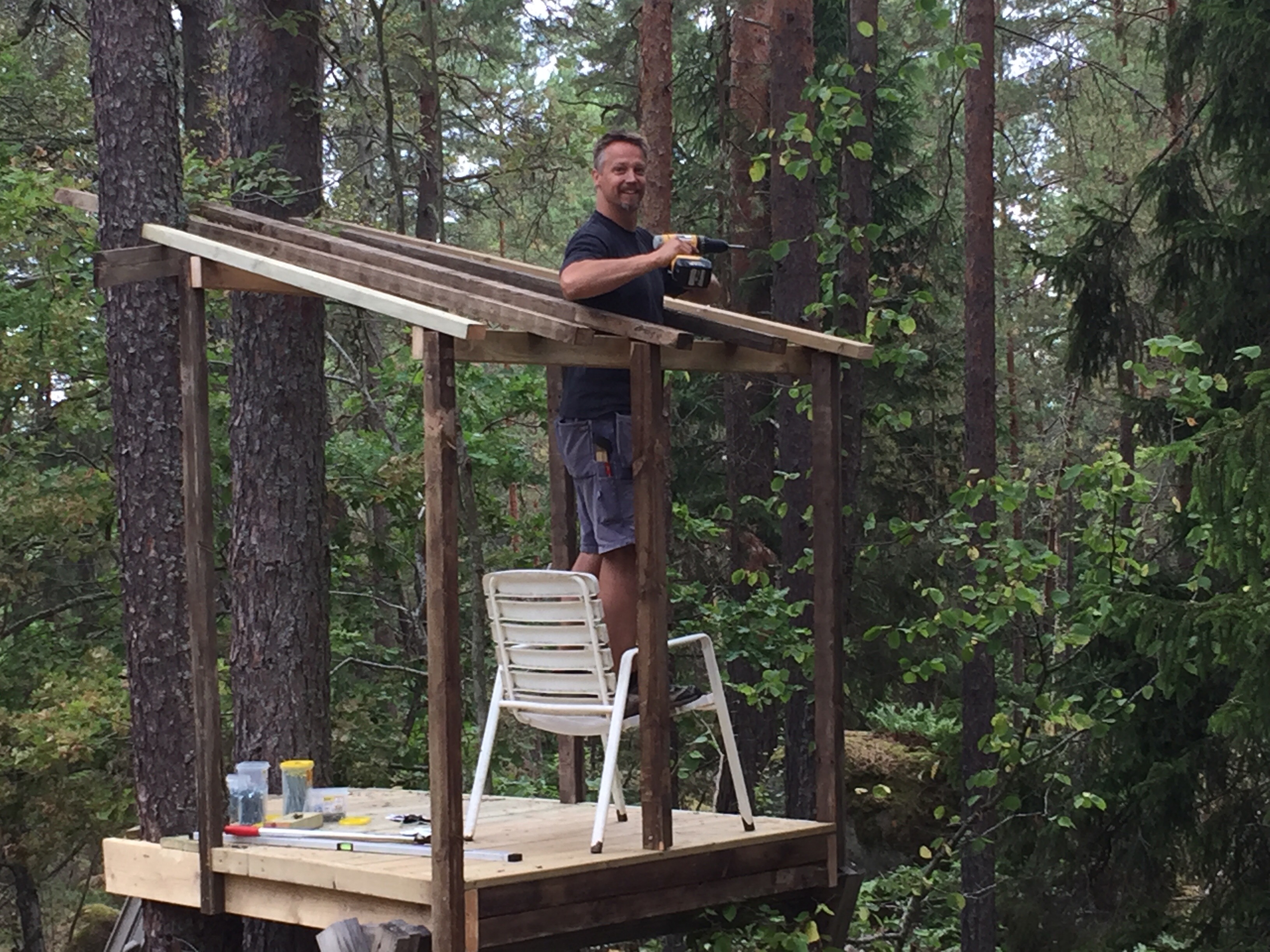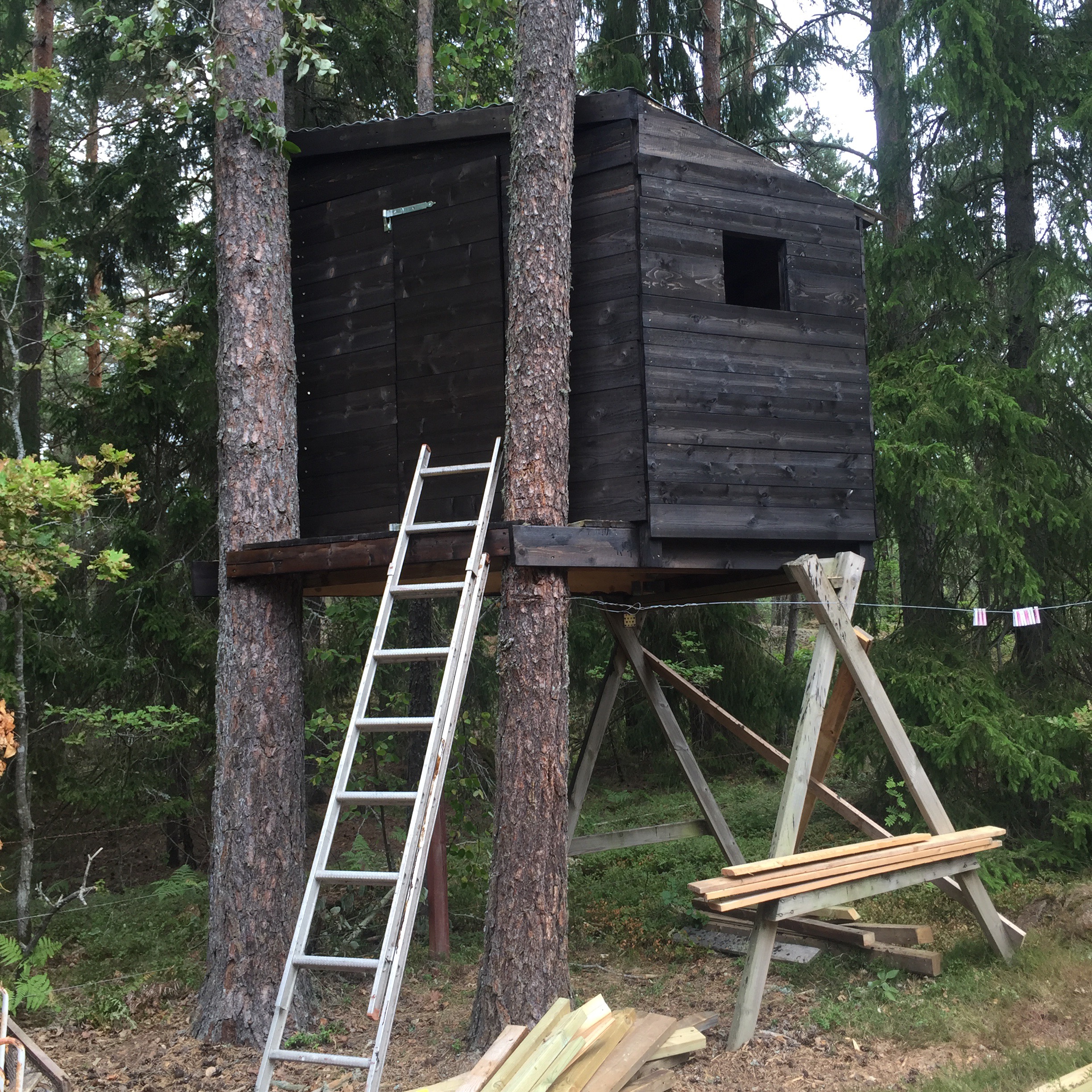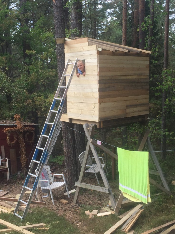 Hur gick det då med projektet trädkoja? Här kommer bilderna på hur den växer fram till att bli ett litet mysigt mästerverk!
