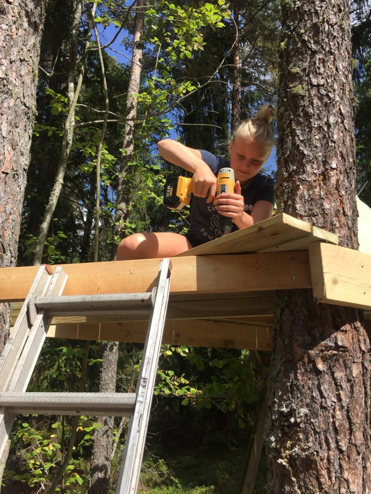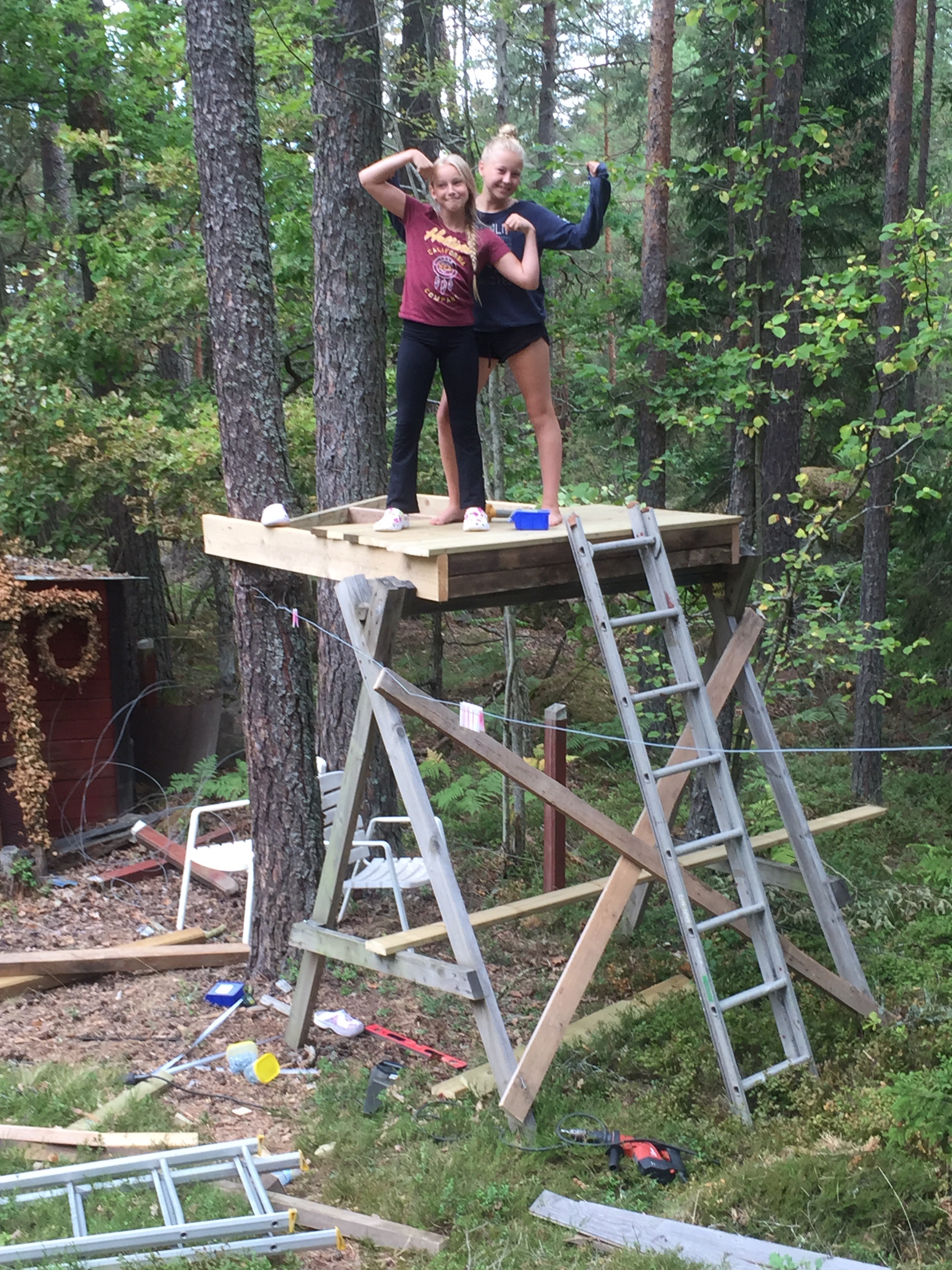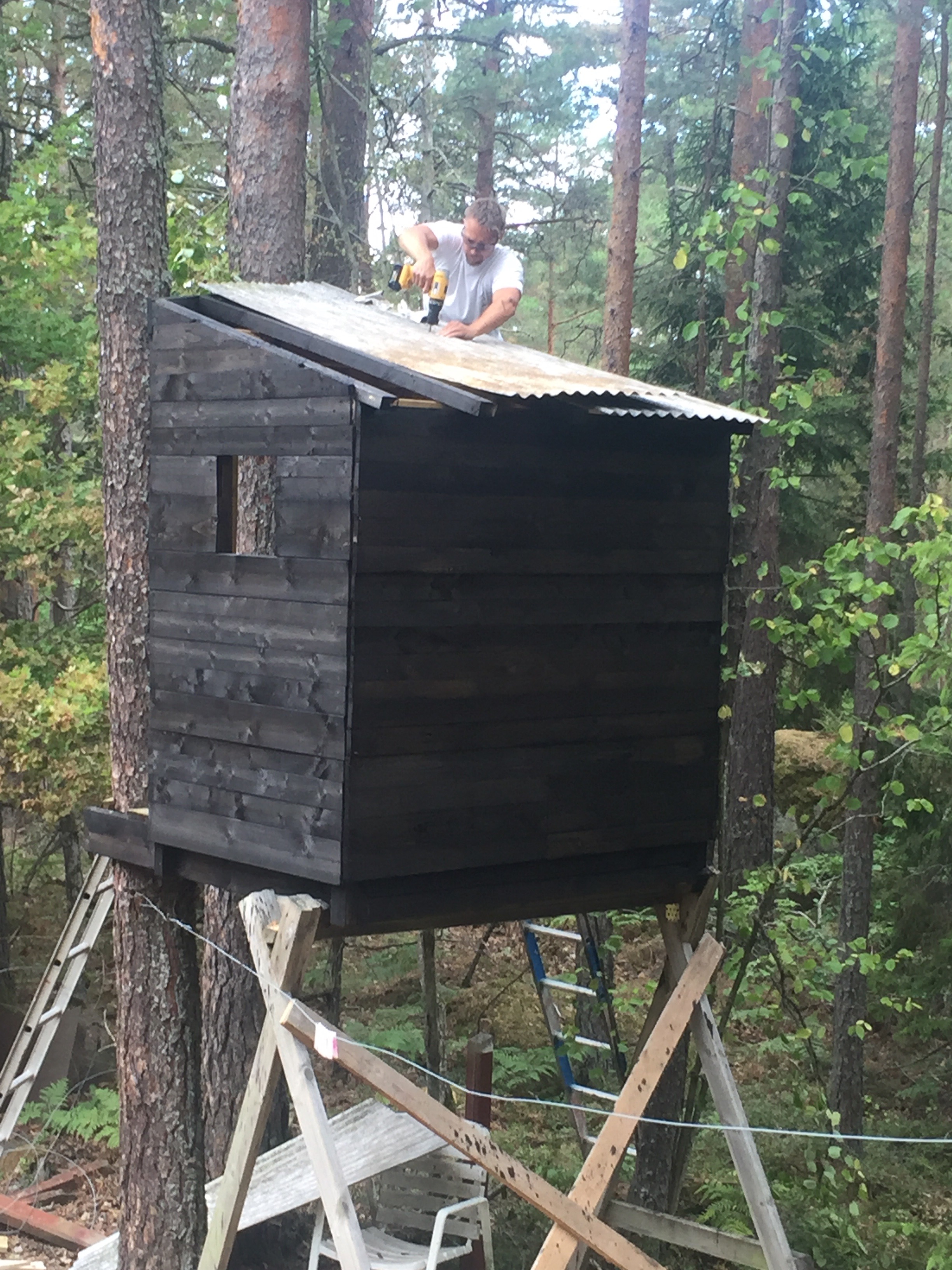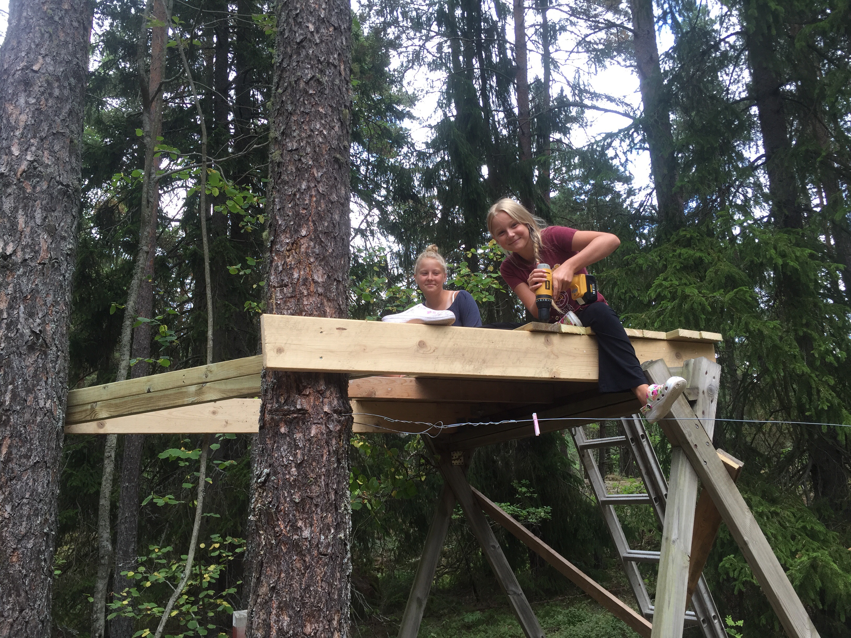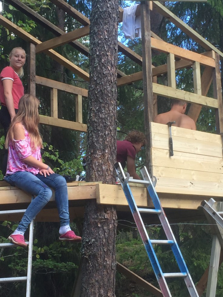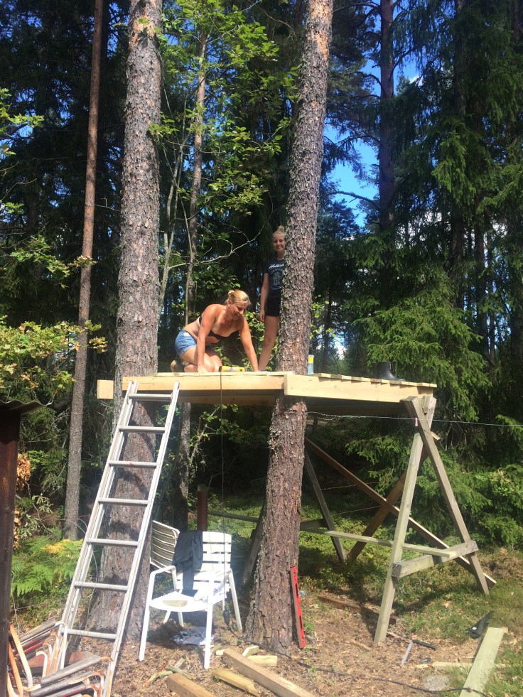 Hur gick det då med projektet trädkoja? Här kommer bilderna på hur den växer fram till att bli ett litet mysigt mästerverk!
