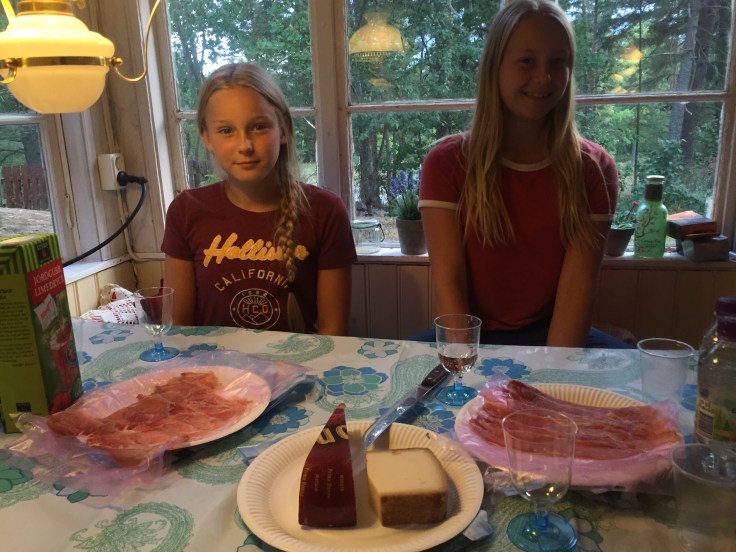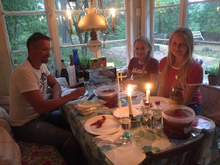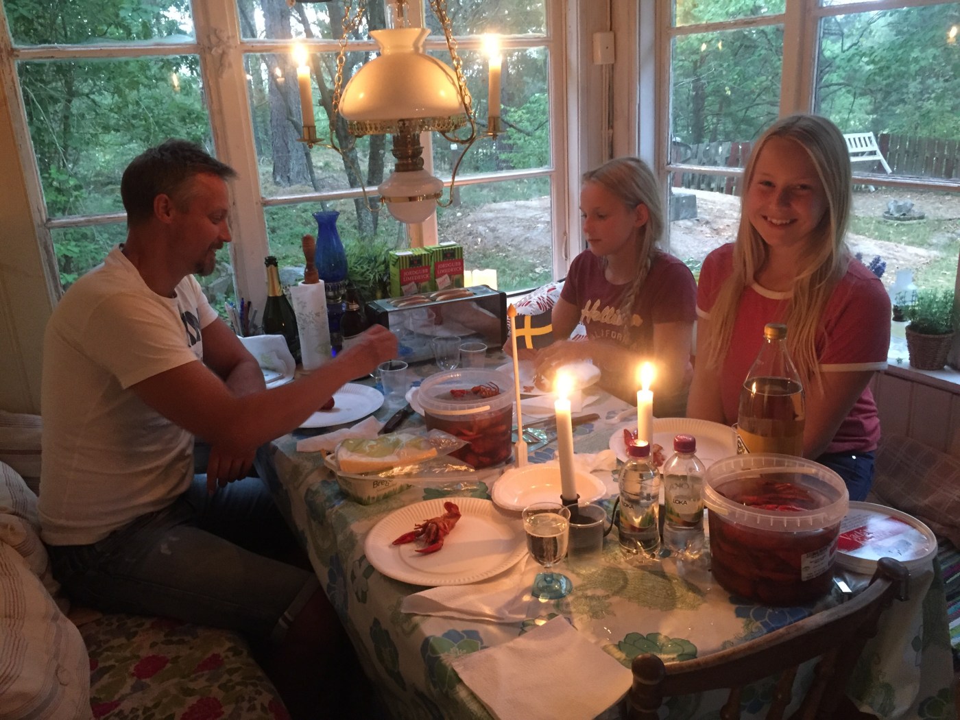 I brist på svampmacka till middag kunde jag inte låta bli att köpa lite ost och skinka och kräftor!!! En riktig festmåltid! Det blev en mysig avslutning på semestern på landet.
