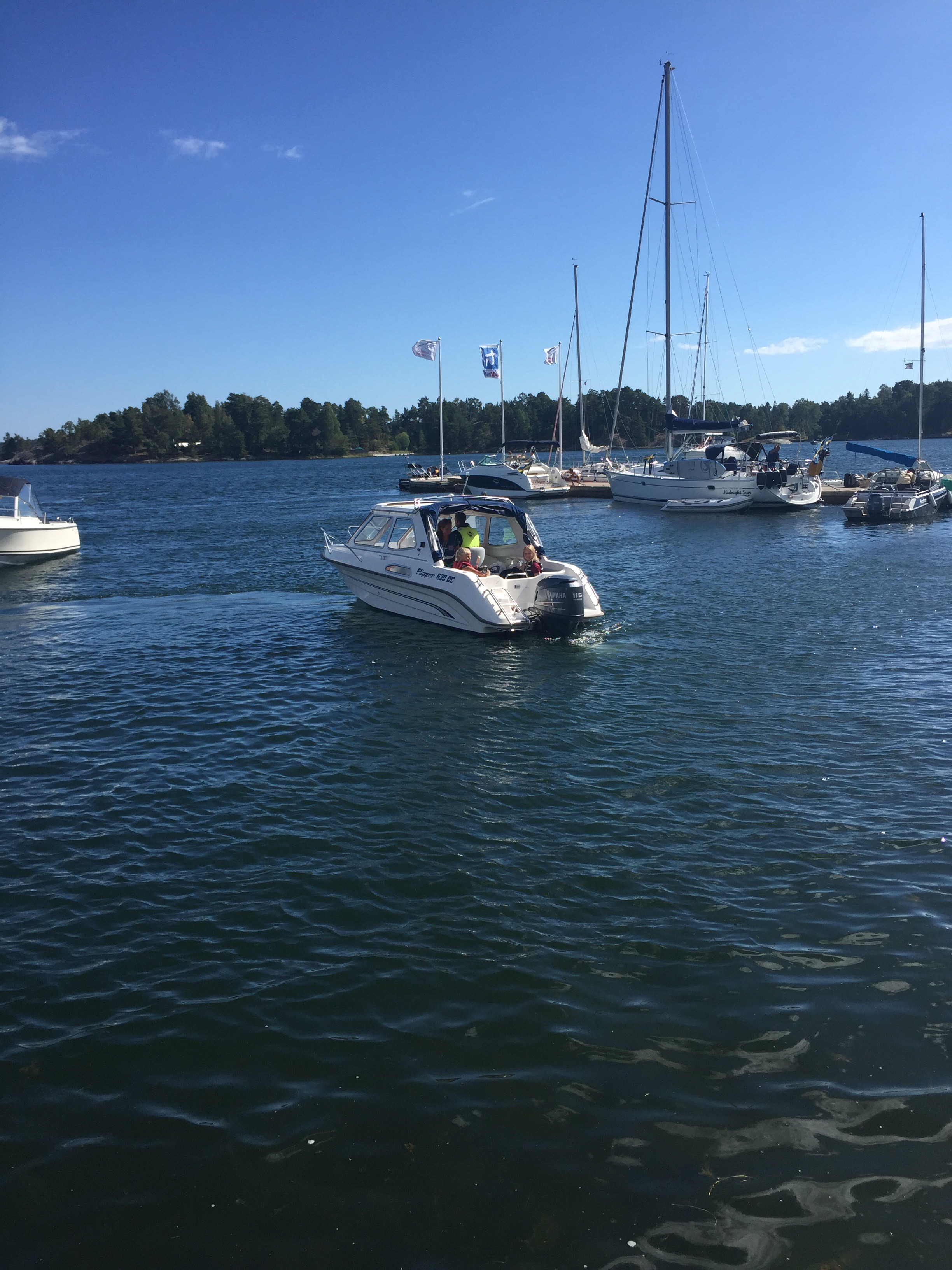 Idag har vi vinkat av Lina i Stavsnäs vinterhamn. Hon ska följa med kompisen Ida till hennes landställe ute i skärgården några dagar.