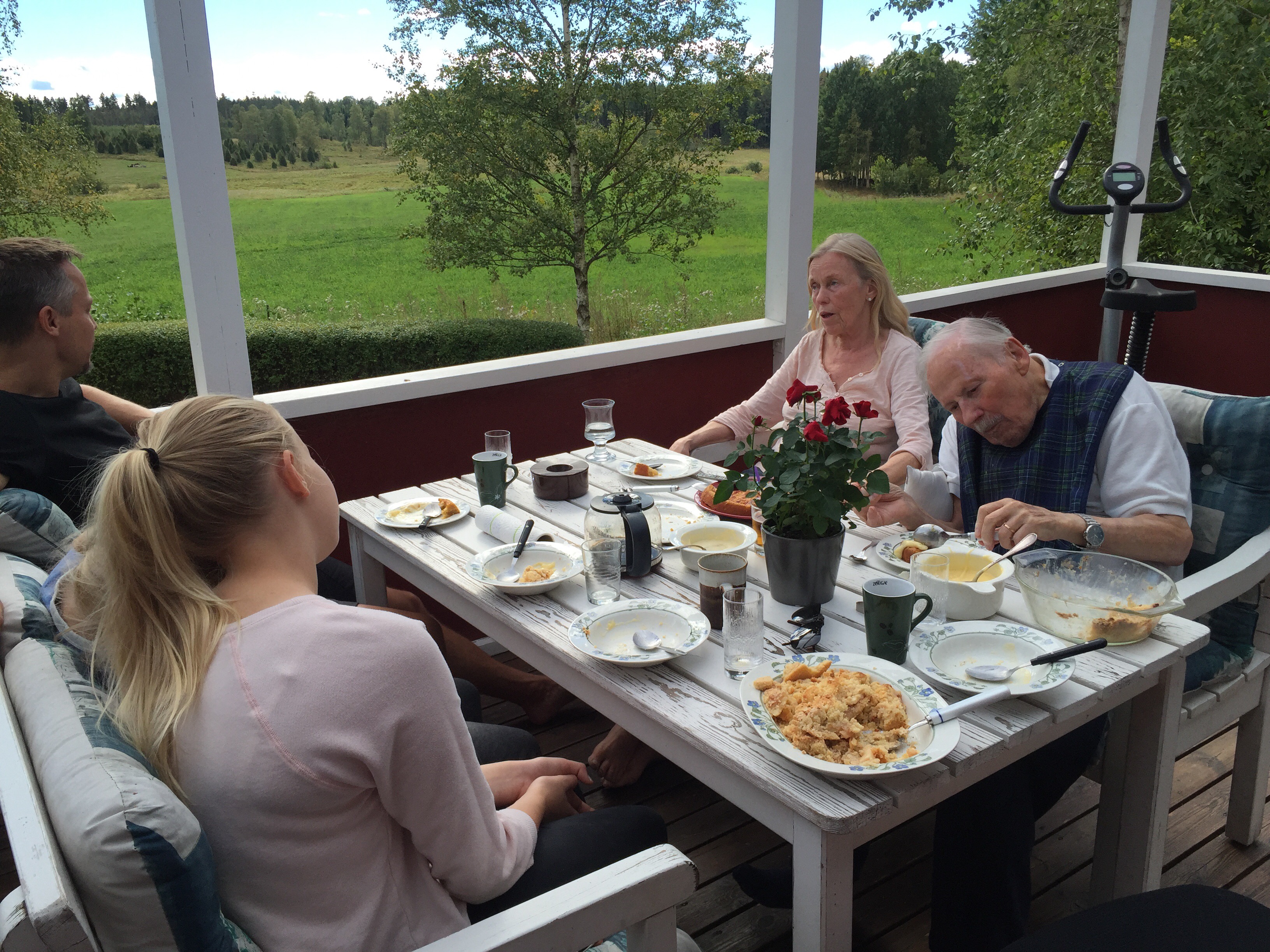 Äppelkaksfest på verandan.