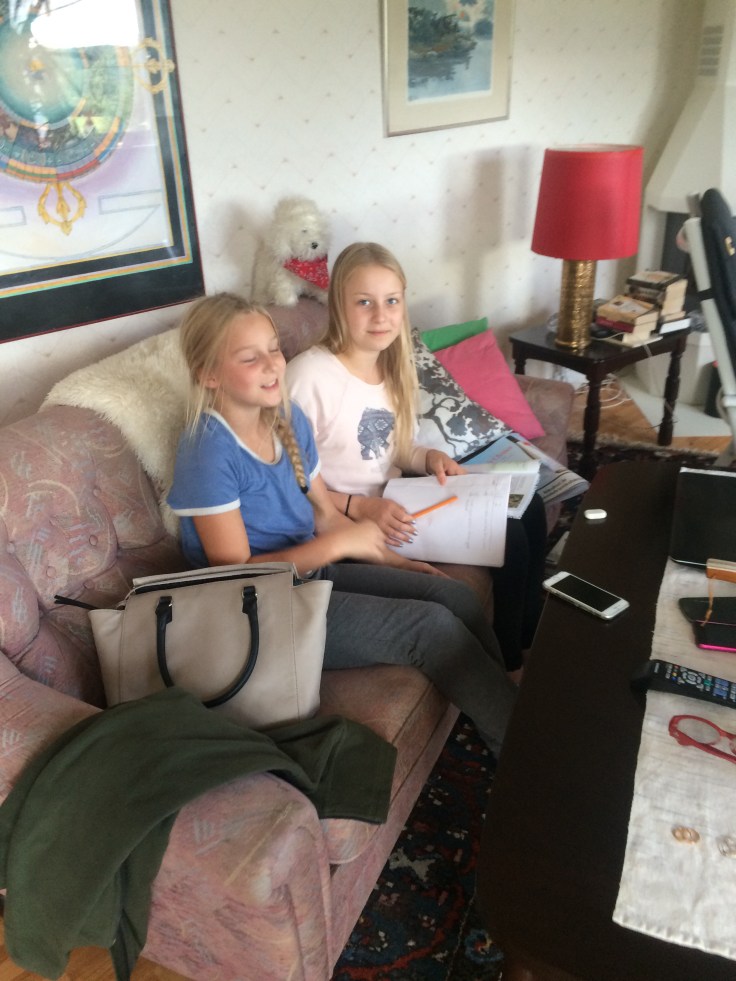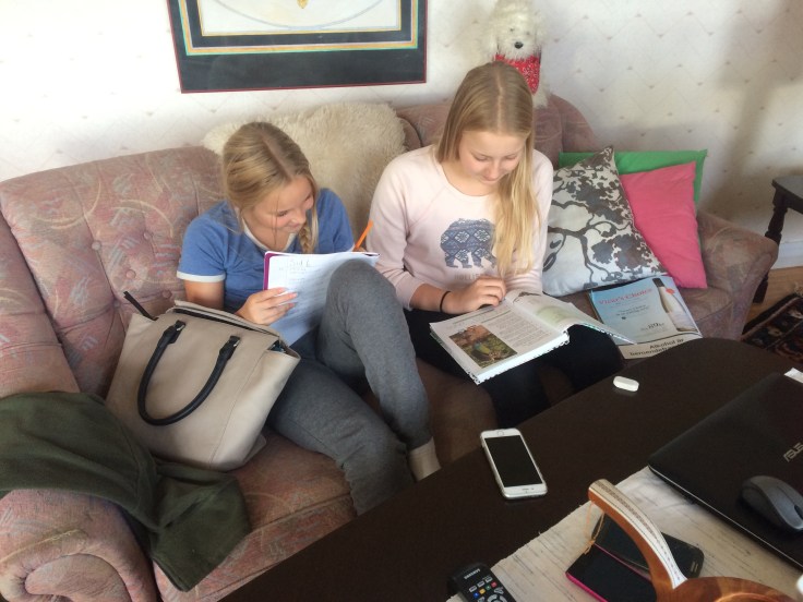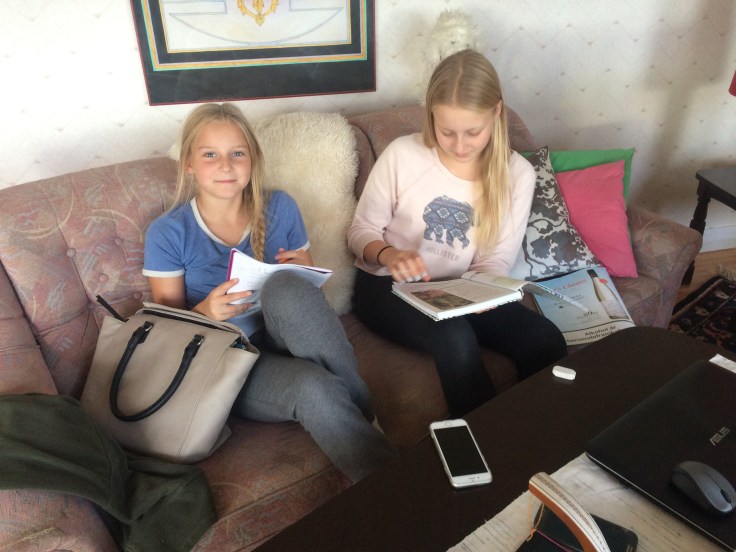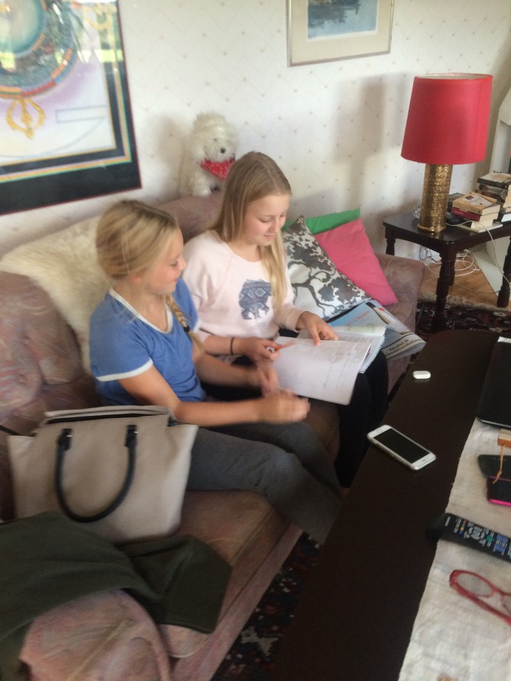 Lina hade lite läxor att göra och fick lite hjälp av syrran.
