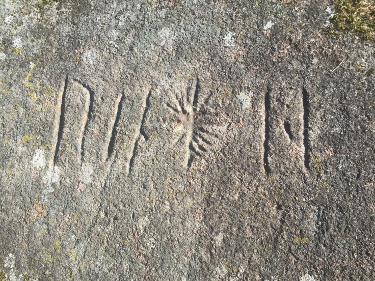 Här har vi fått i uppdrag att hitta en hällristning. Jag tror det var Peter som till slut hittade den.