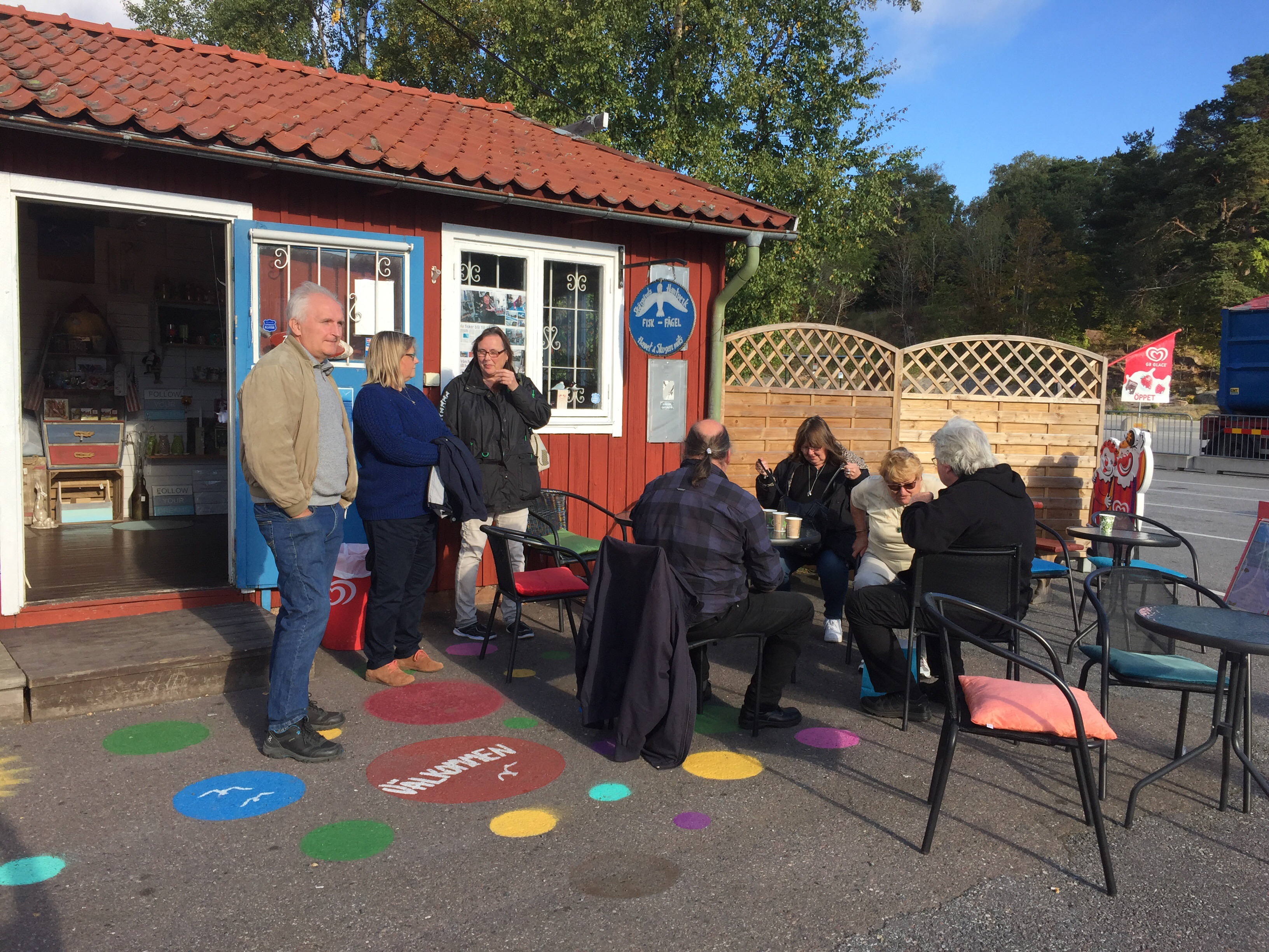 Väl framme vid hamnen var vi först på plats och först i kön🤗 behöver jag nämna att Magnus var med på resan😉 Men efter ett tag fylldes det på med syskon på det lilla fiket.