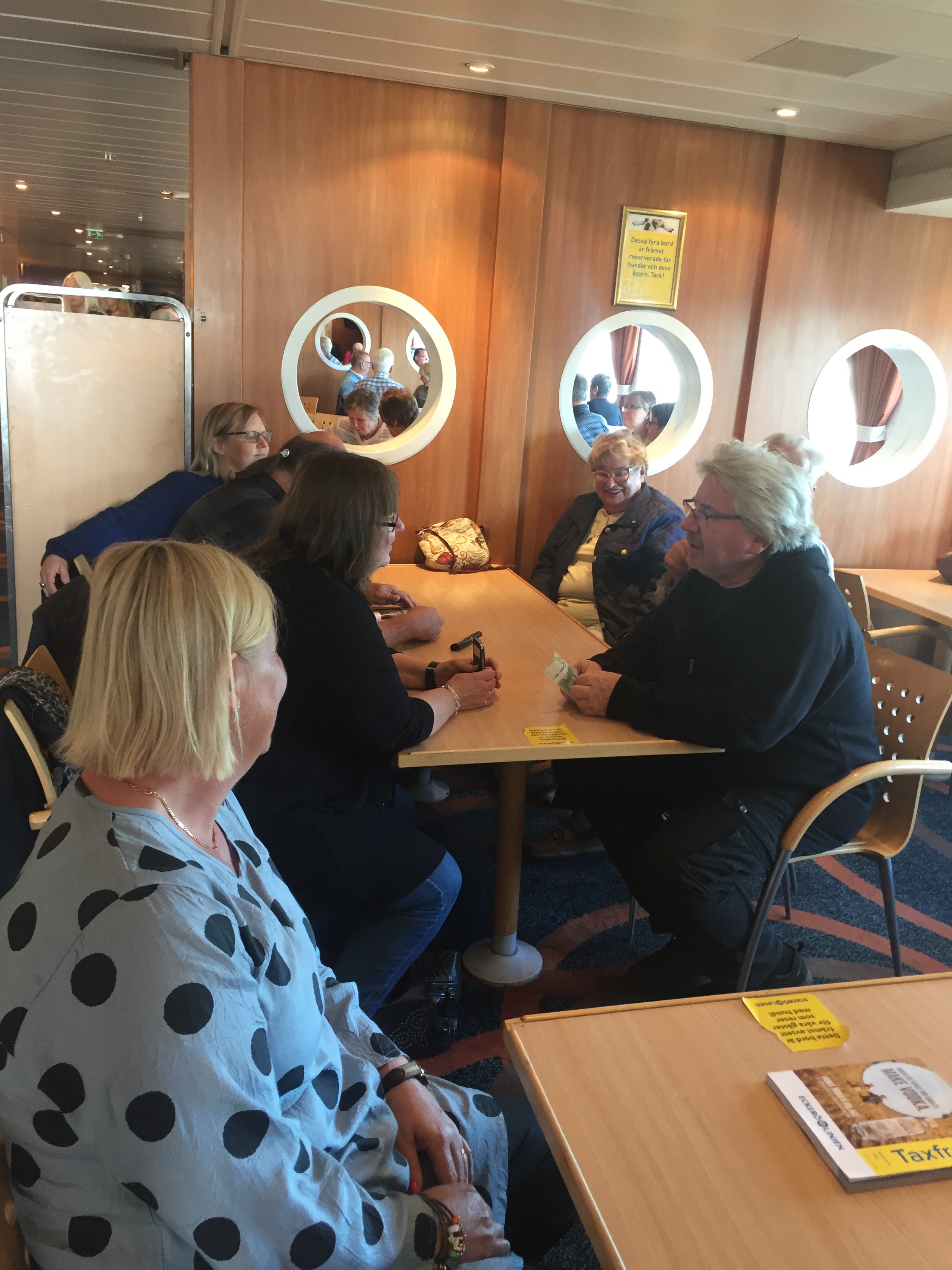 Ombord på båten satte vi oss först i hundhörnan i cafét…