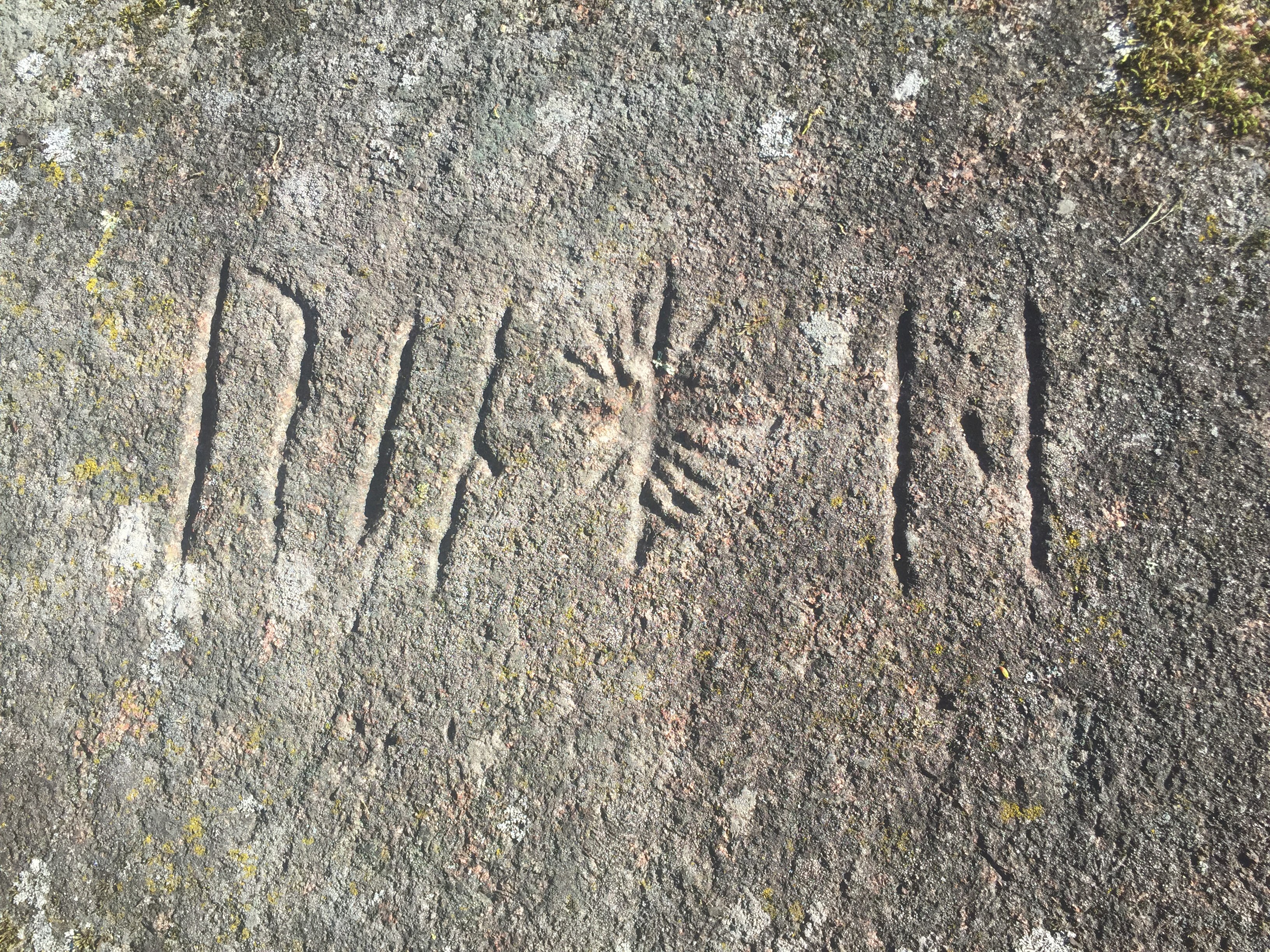 Här har vi fått i uppdrag att hitta en hällristning. Jag tror det var Peter som till slut hittade den.