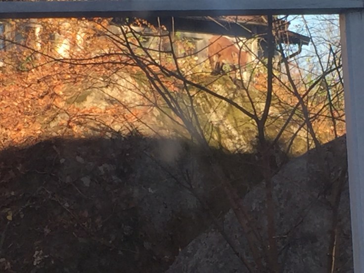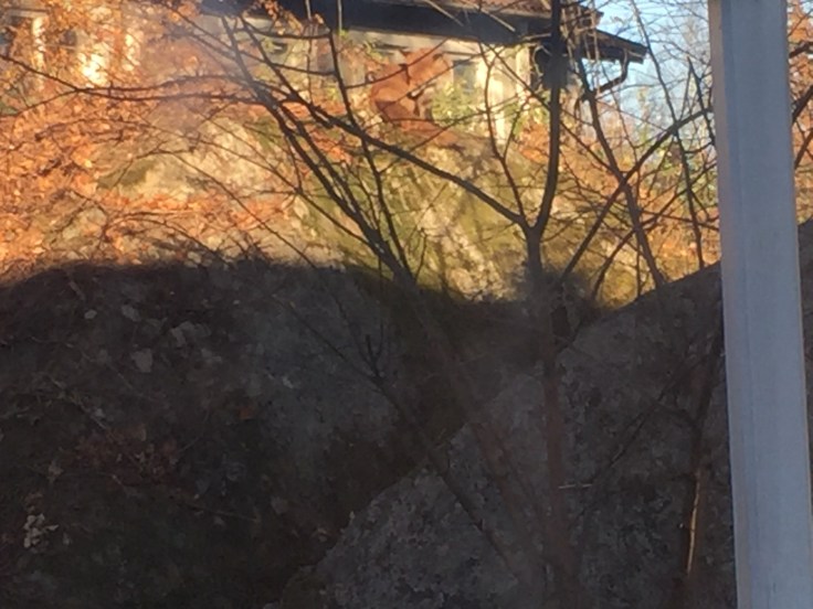 IgÄr hade vi en fin liten rÀv utanför köksfönstret. Det hör inte till vardagen! Det hÀr ögonblicket mÄste sparas pÄ bloggen! Kanske inte vÀrldens bÀsta bilder, men visst ser man att det Àr Mickel rÀv som var hÀr?