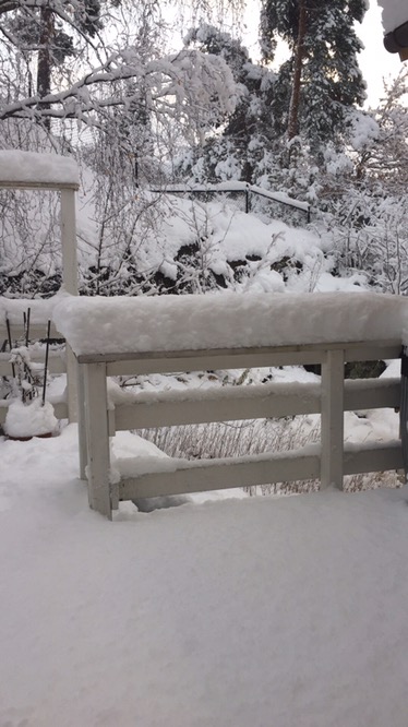 Mycket snö har vi, lite speciellt att björklöven hĂ€nger kvar underđ