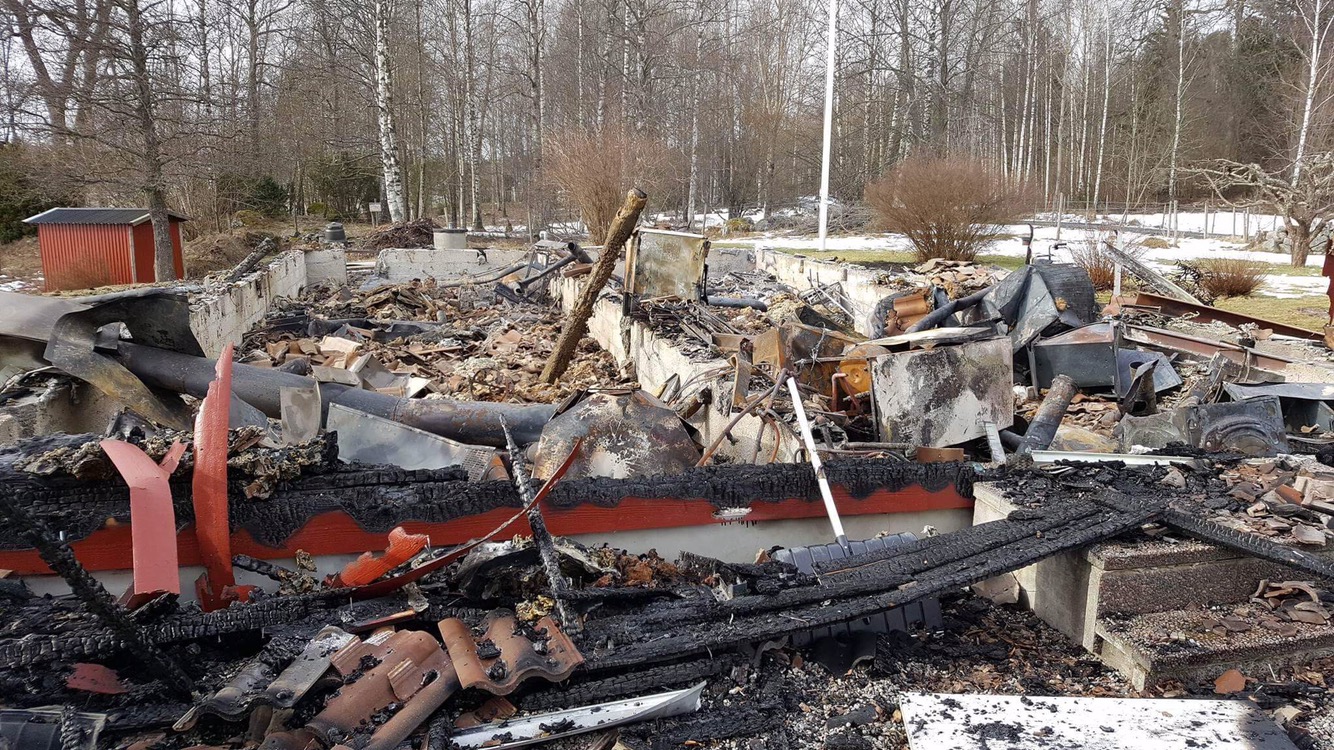 Villa i Knektbacken totalförstörd i brand – en person brännskadad