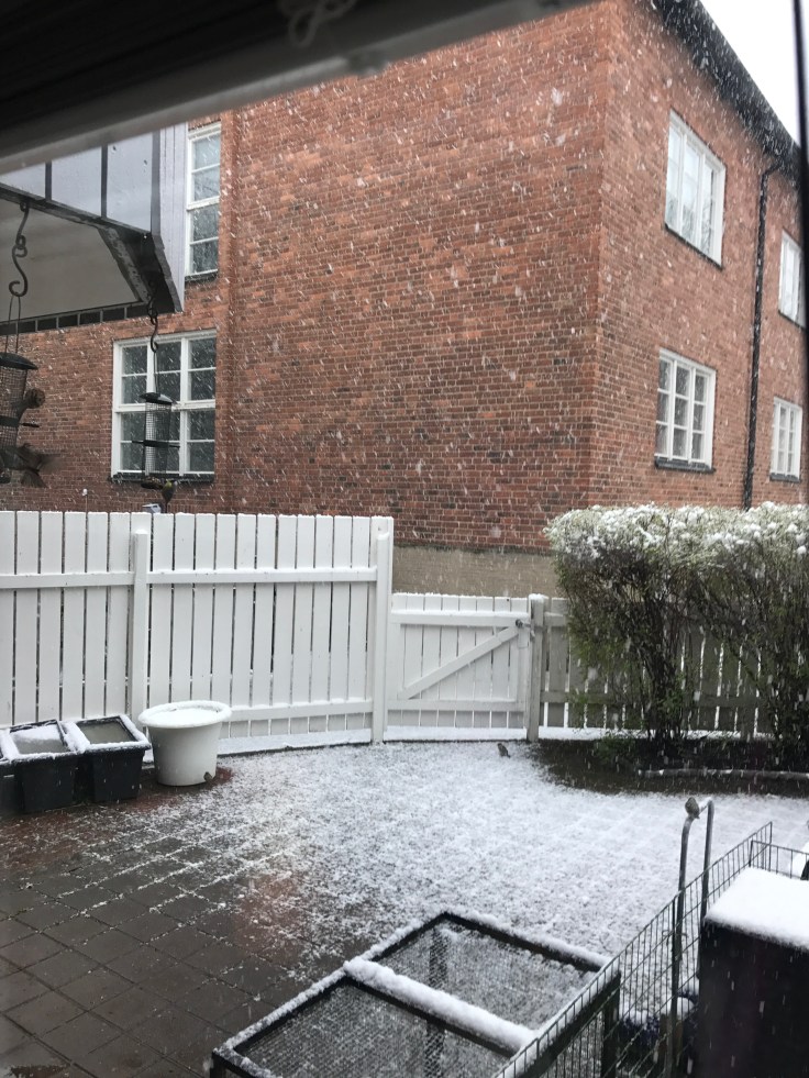Det här året har det varnats för riktigt aprilväder och det tycker jag verkligen att dom prickade in. På fredagsmorgonen snöade det ordentligt! Inte riktigt vad man önskar nu faktiskt. Nu längtar man efter sol och värme! Nåja, mycket värre än så här blev det inte. Vi hade ganska fint väder faktiskt om än väldigt kallt!