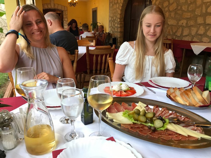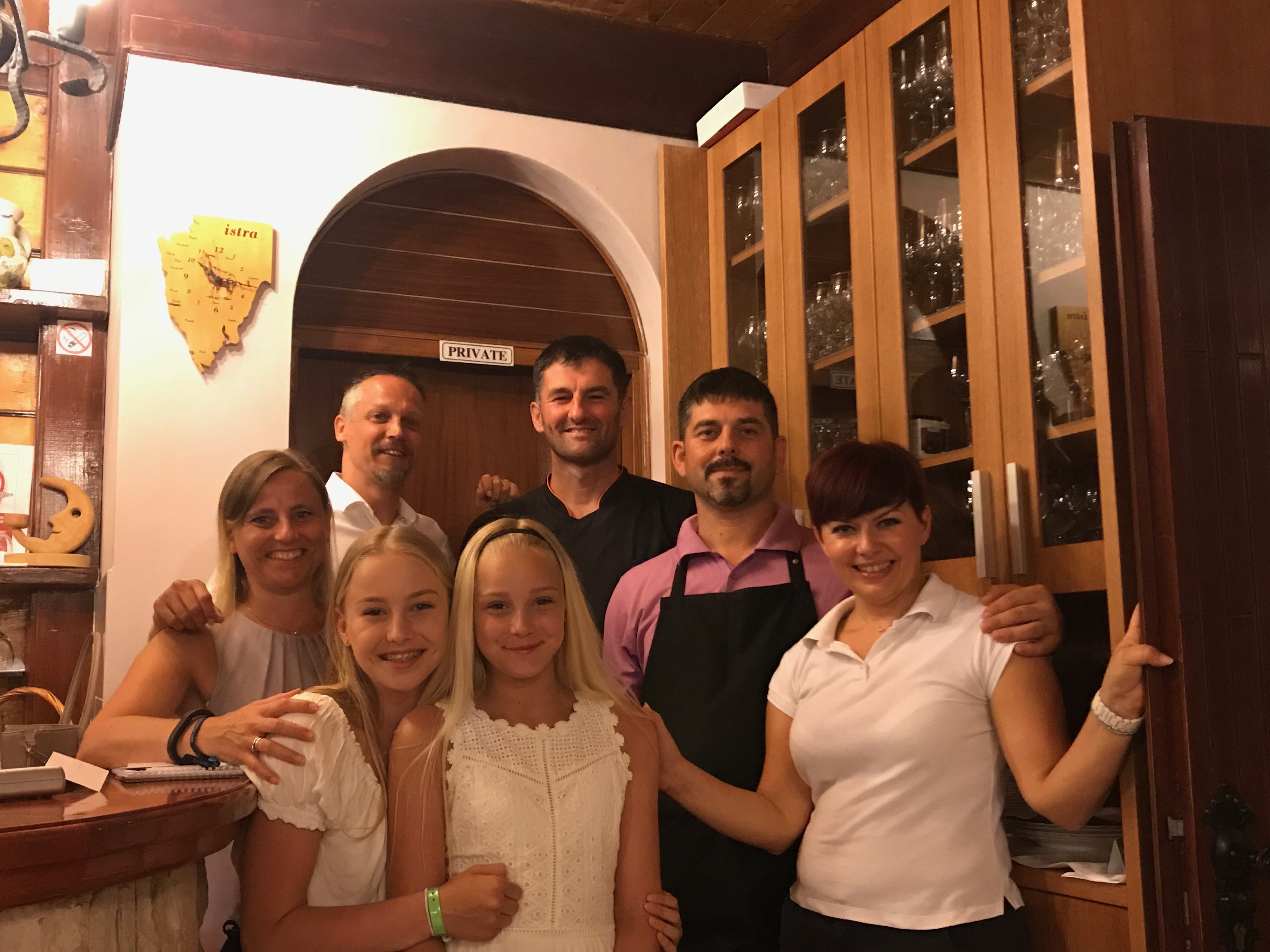 På kvällen gjorde vi något alldeles speciellt, det blev alltså inte resataurangen på hotellet även om det har varit helt fantastisk mat där hela veckan. Istället blev vi rekommenderade en familjerestaurang på landet utanför Labin som bara serverar mat från gården tillagat på Kroatiskt vis. Riktig fullträff! Så härlig familj som gjorde vår bröllopsdag riktigt speciell.