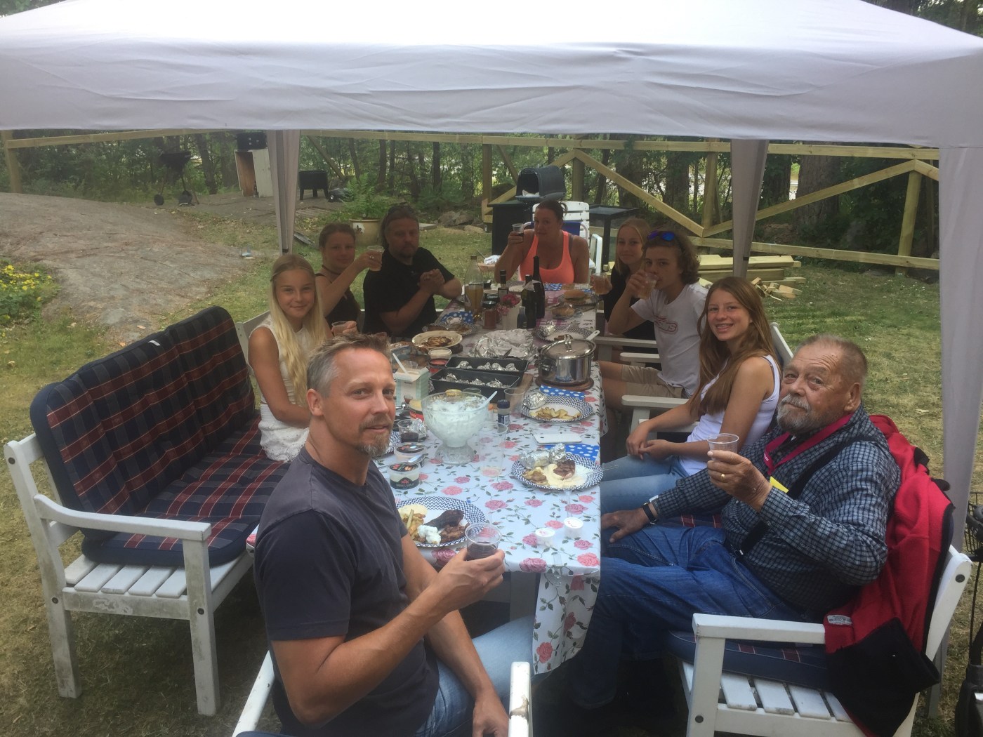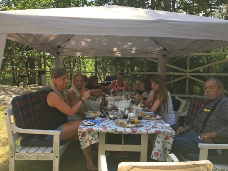 Skål för morfar/farfar! Och apropå skål så passade vi på att dagen till ära öppna det fina rödvinet som vi köpte i Kroatien. Dom hade en Merlot från 2004 som dom var väldigt stolta över och som hade vunnit två utmärkelser. Det var faktiskt jättegott!