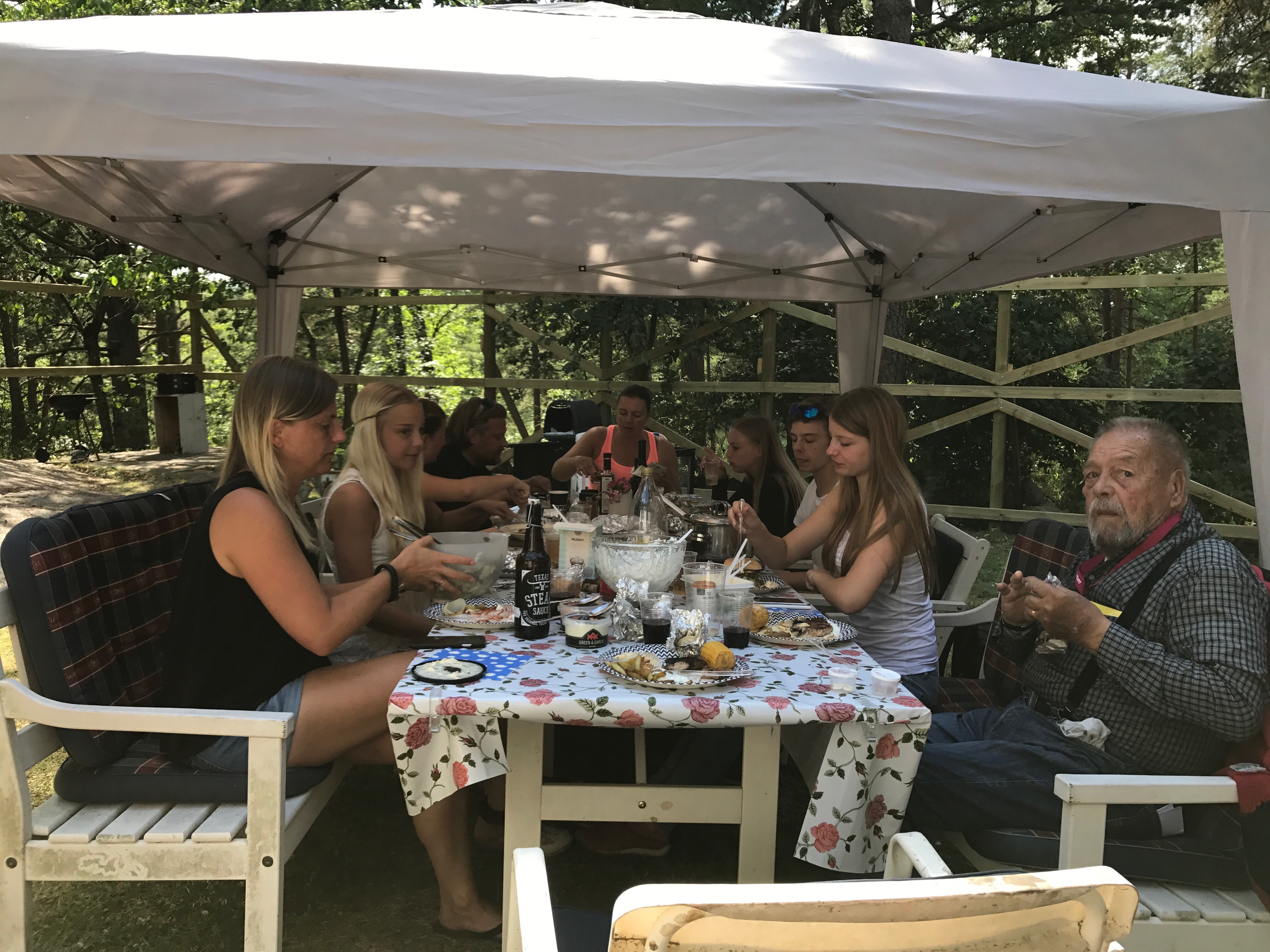 I år firade vi farfar några dagar efter den riktiga födelsedagen då han var upptagen på annat håll på självaste dagen. Själva födelsedagen var i torsdags (20 juli) och vi firade i lördags. På den beställda menyn stod grillat kött, pommes frites och Beanaisesås! I och med att Tove vill försöka vara vegetarian körde vi också grillad Halloumi (vilket jag också föredrar faktiskt) som alternativ.