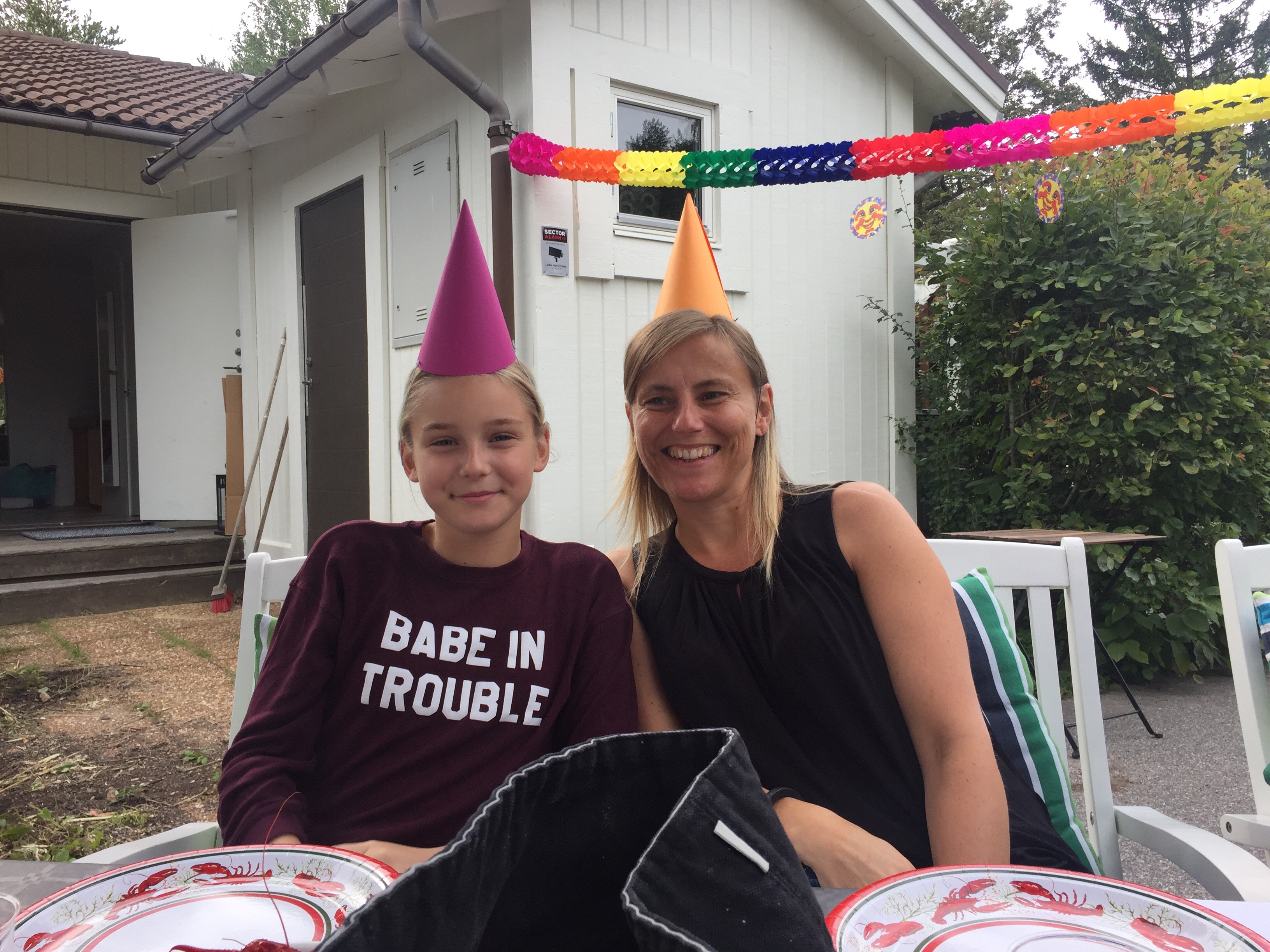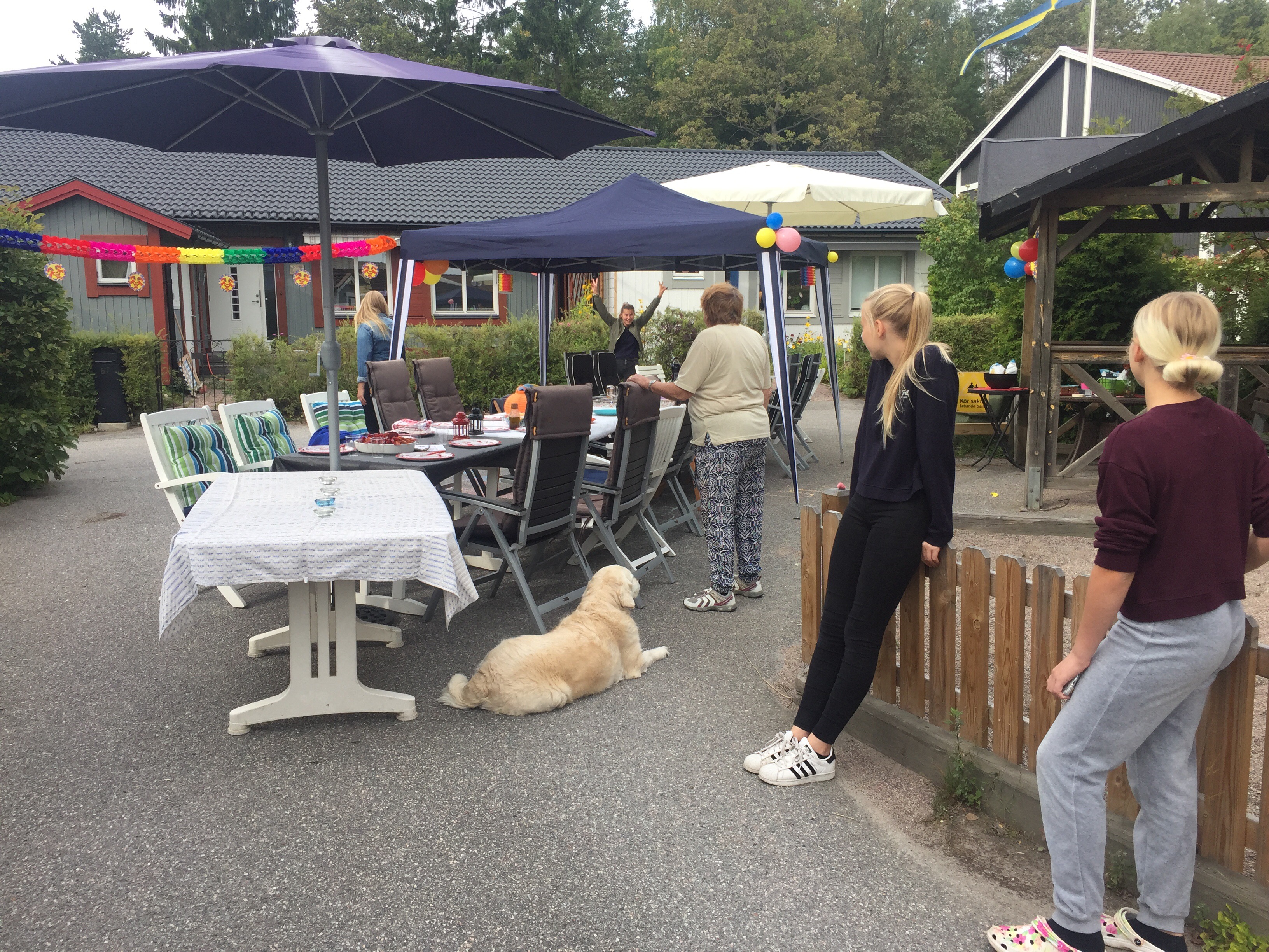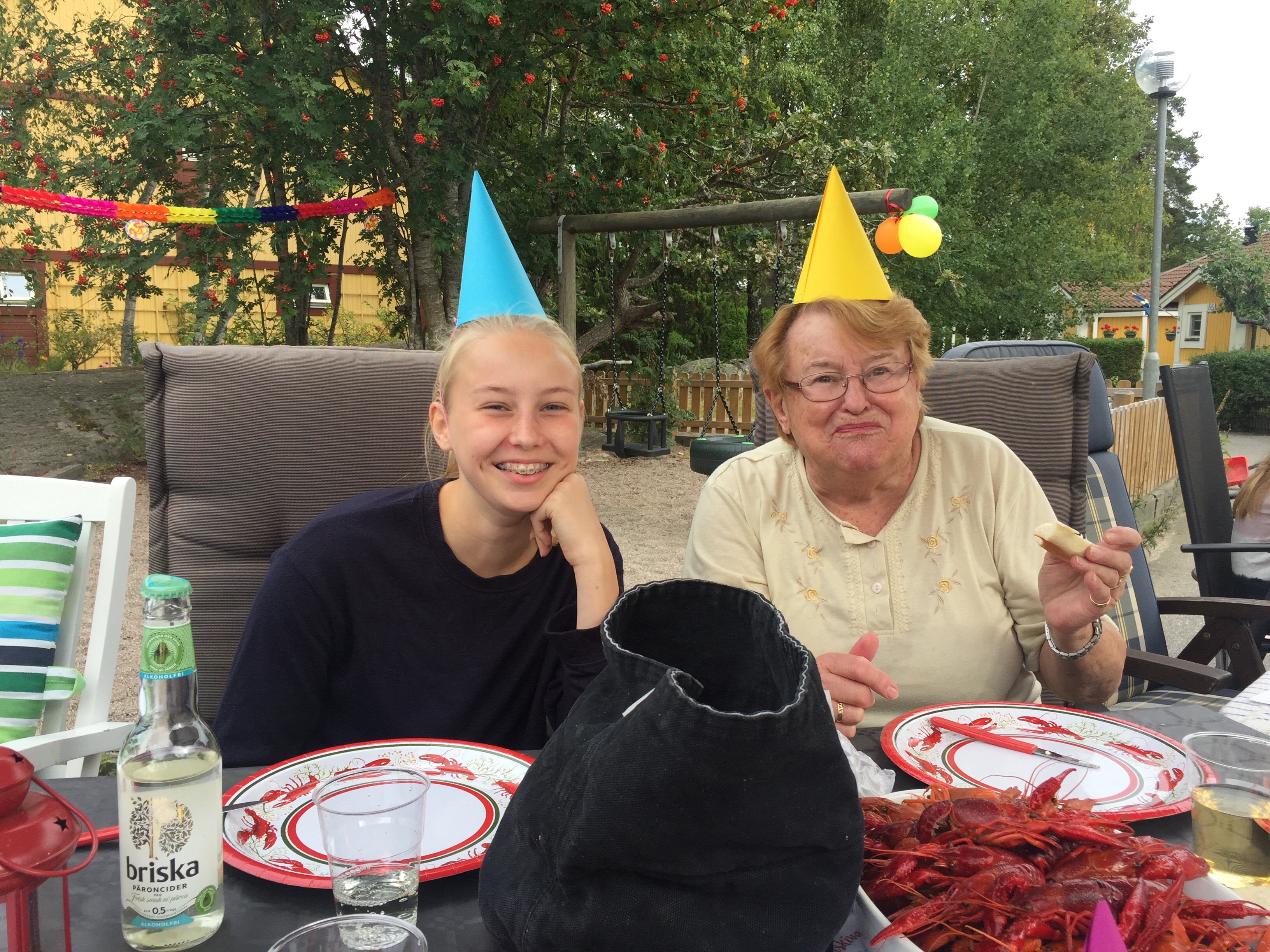 Men som ersättare för Magnus på kräftskivan frågade vi mormor om hon inte ville komma, och det ville hon❤ Här pågår uppdukning! Just det, Flisa var med också! Hon var rätt nöjd med alla klappar hon fick under kvällen. Mamma sa att hon sov som en stock hela natten sen😊