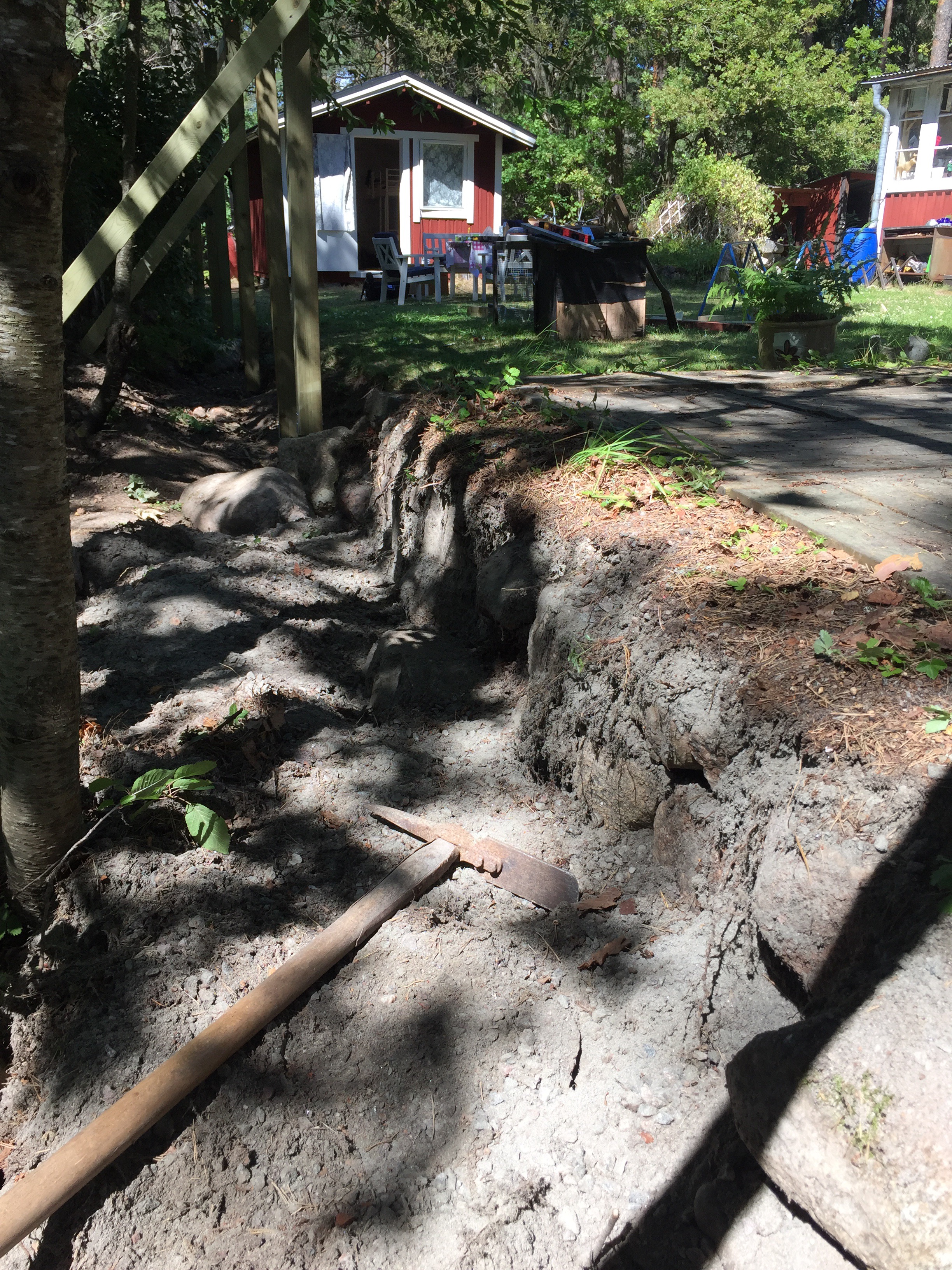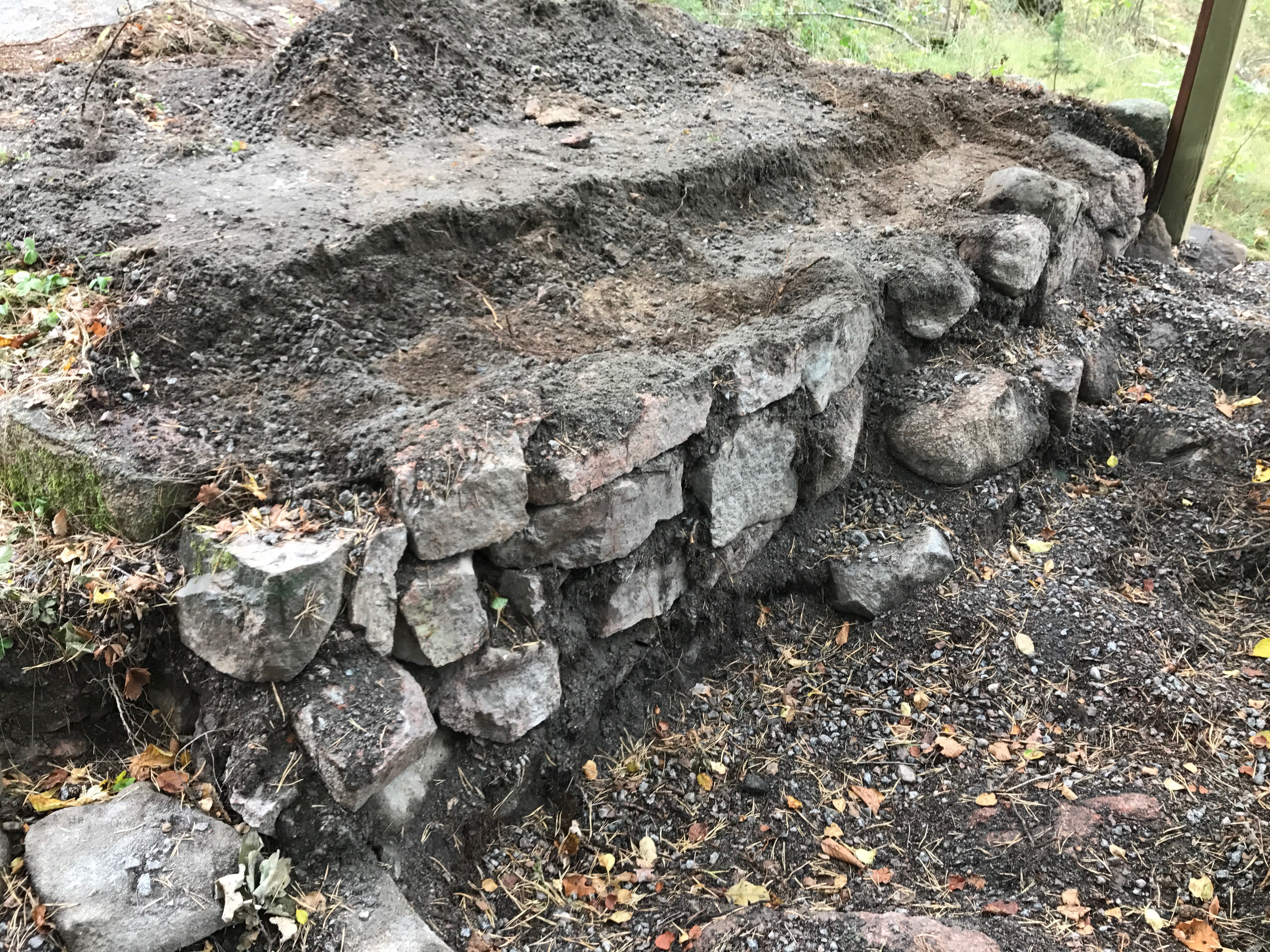 Morfar Lennarts fina mur framgrävd av Magnus. Lite fint ändå att Magnus står här och kämpar med samma mur som morfar en sisådär 60 år senare💕