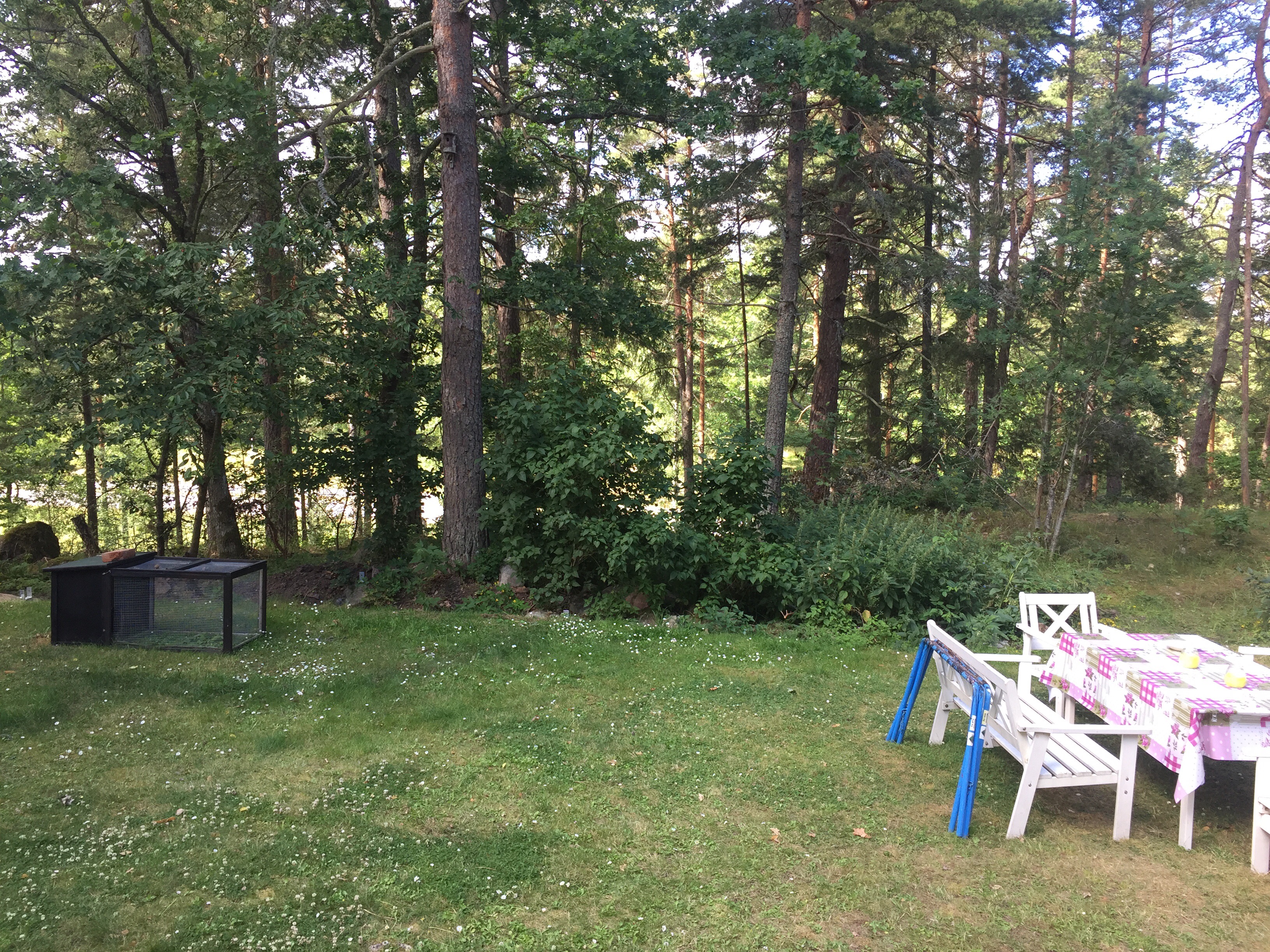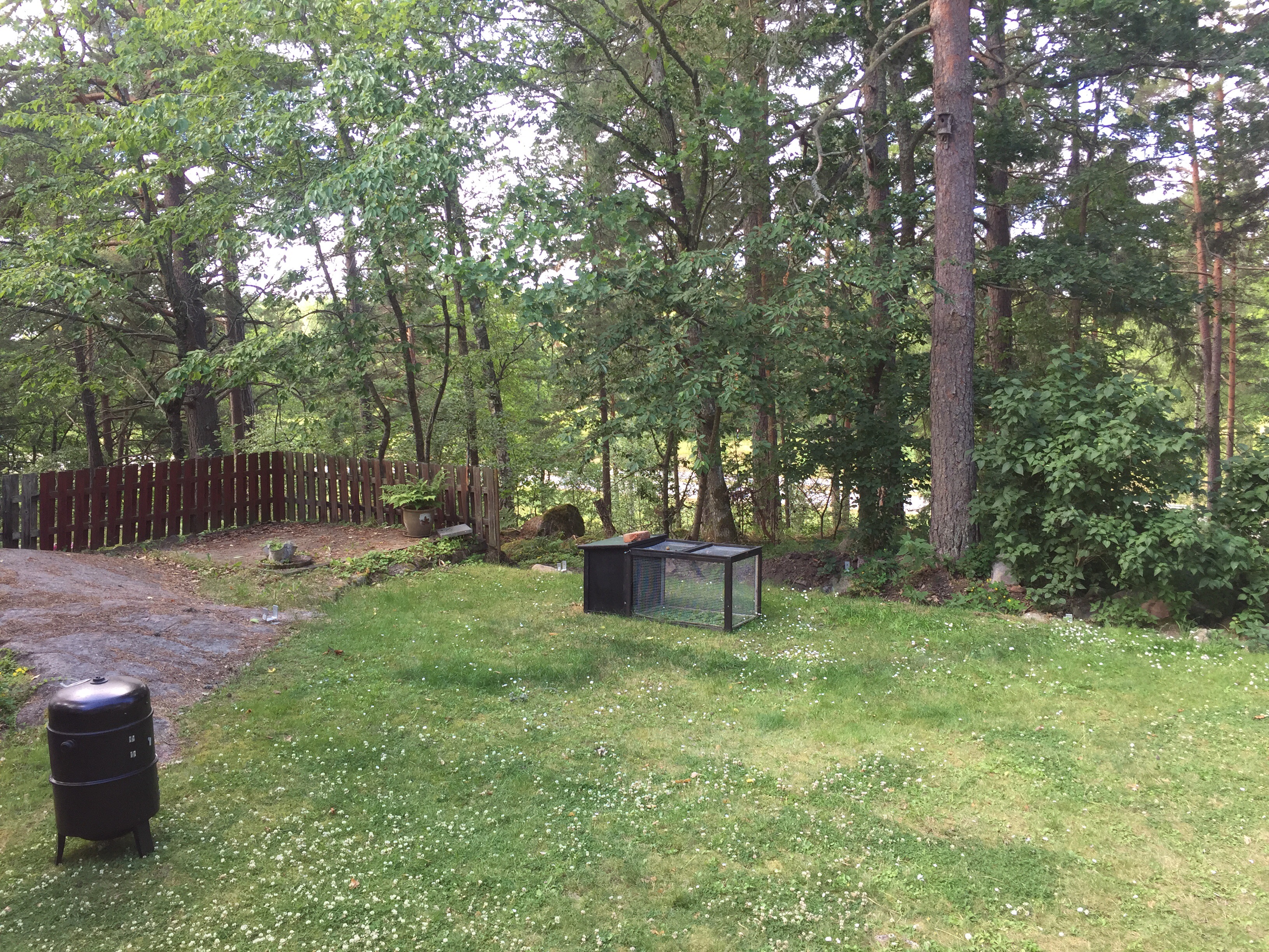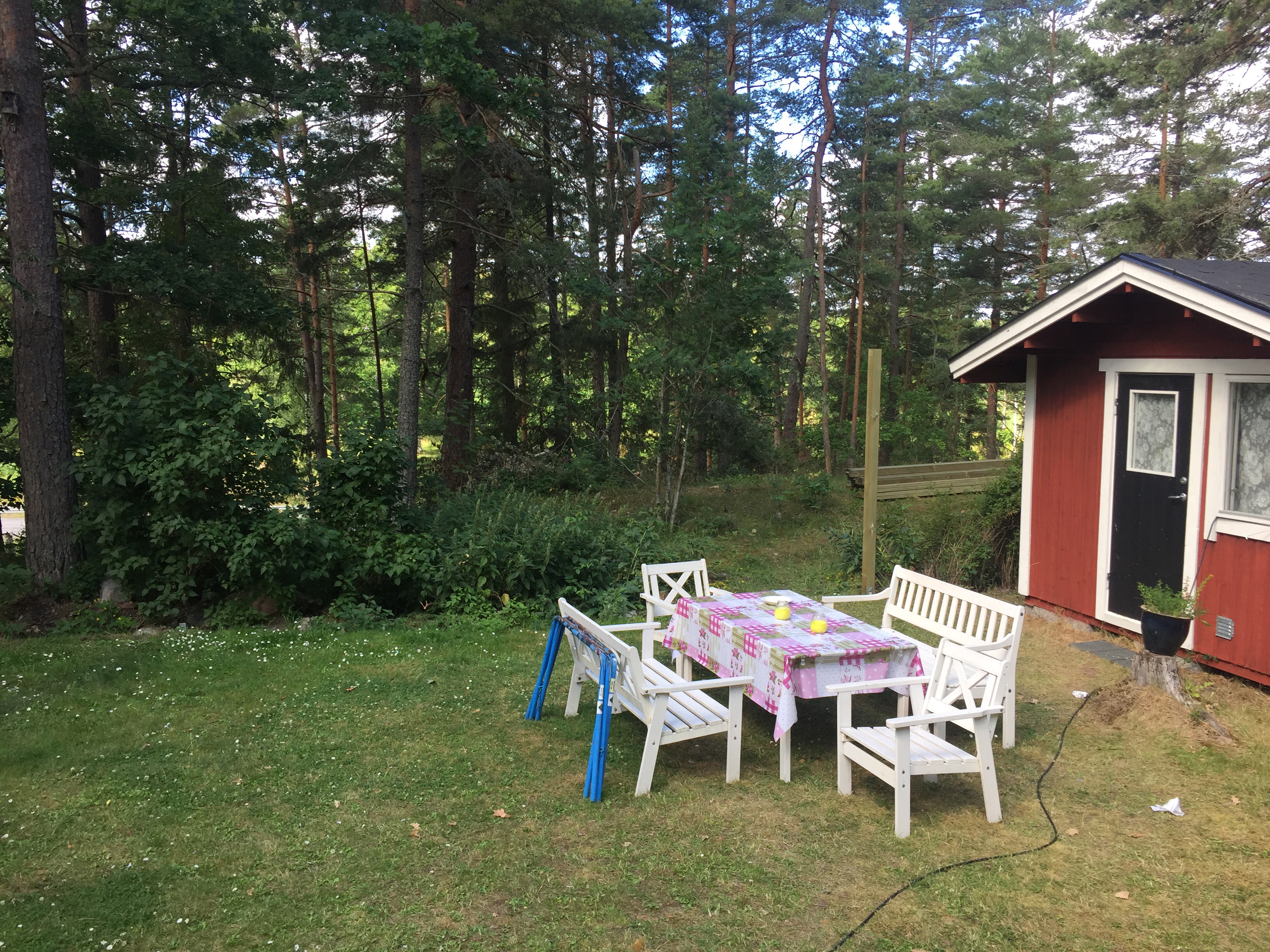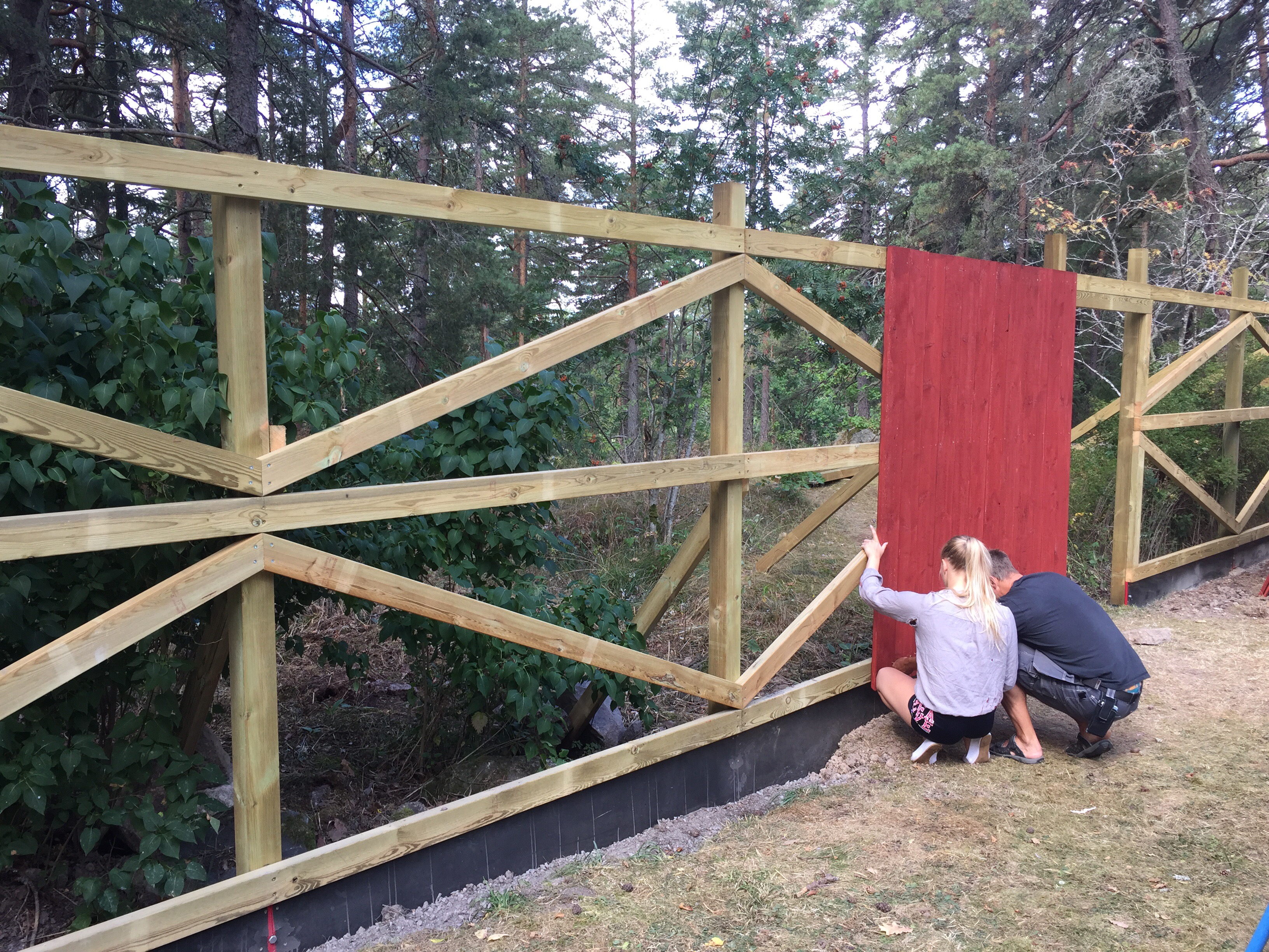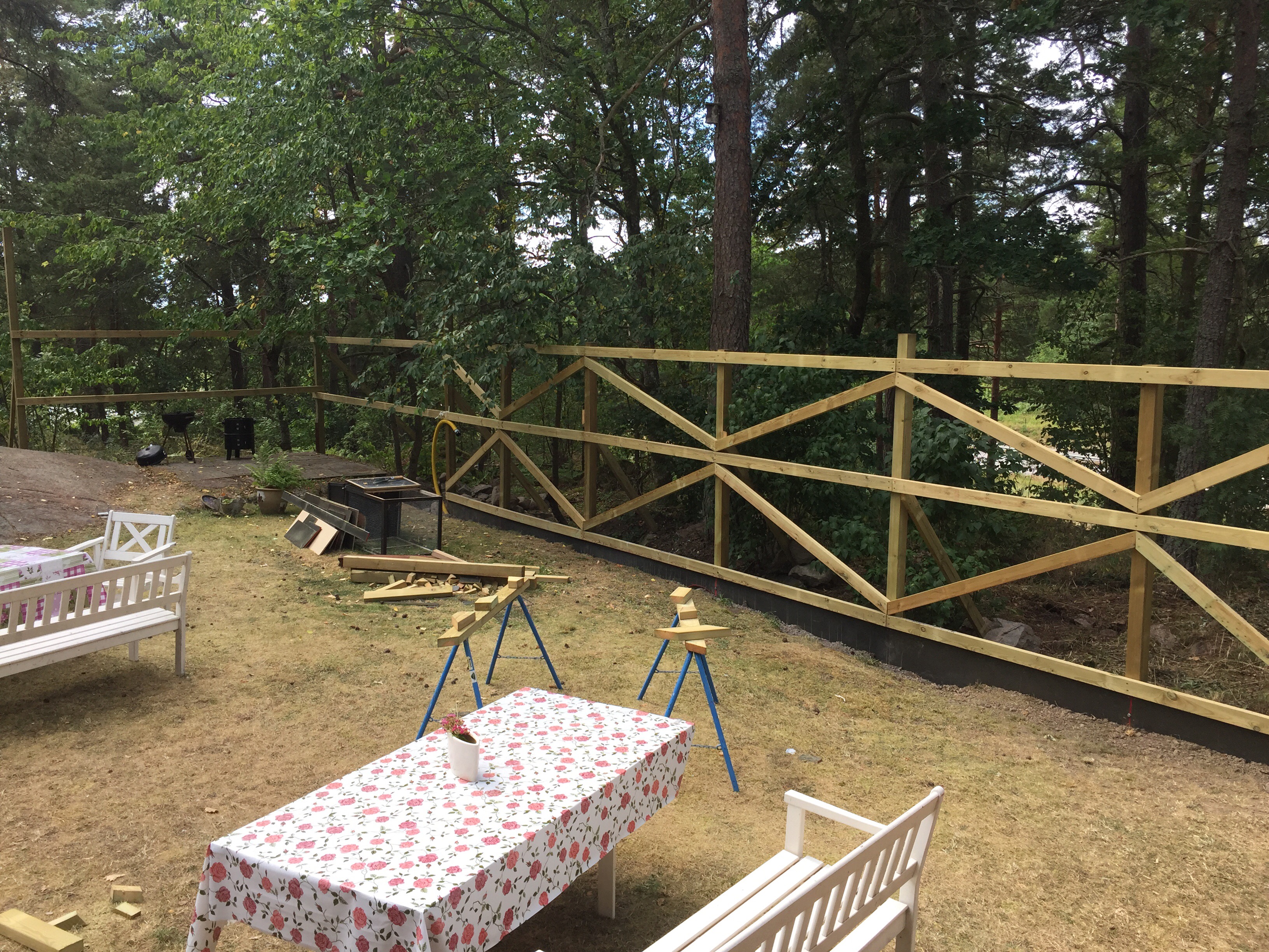 För några är sedan så byggdes vägen till samhället som ligger nära stugan om. Den flyttades egentligen längre bort från oss men i och med att vägen tidigare låg nedanför berget så hörde vi inte vägen på samma sätt. Förutom detta har dessutom hastigheten ökats och skogen glesats ur. Vi har dessutom en bergtäkt i Sturefors så många tunga lastbilar åker förbi. Magnus är nog den som har retat sig på ljudnivån mest sedan dess så i år gjorde vi slag i saken och satte igång bygget med ett bullerplank och en uteplats.