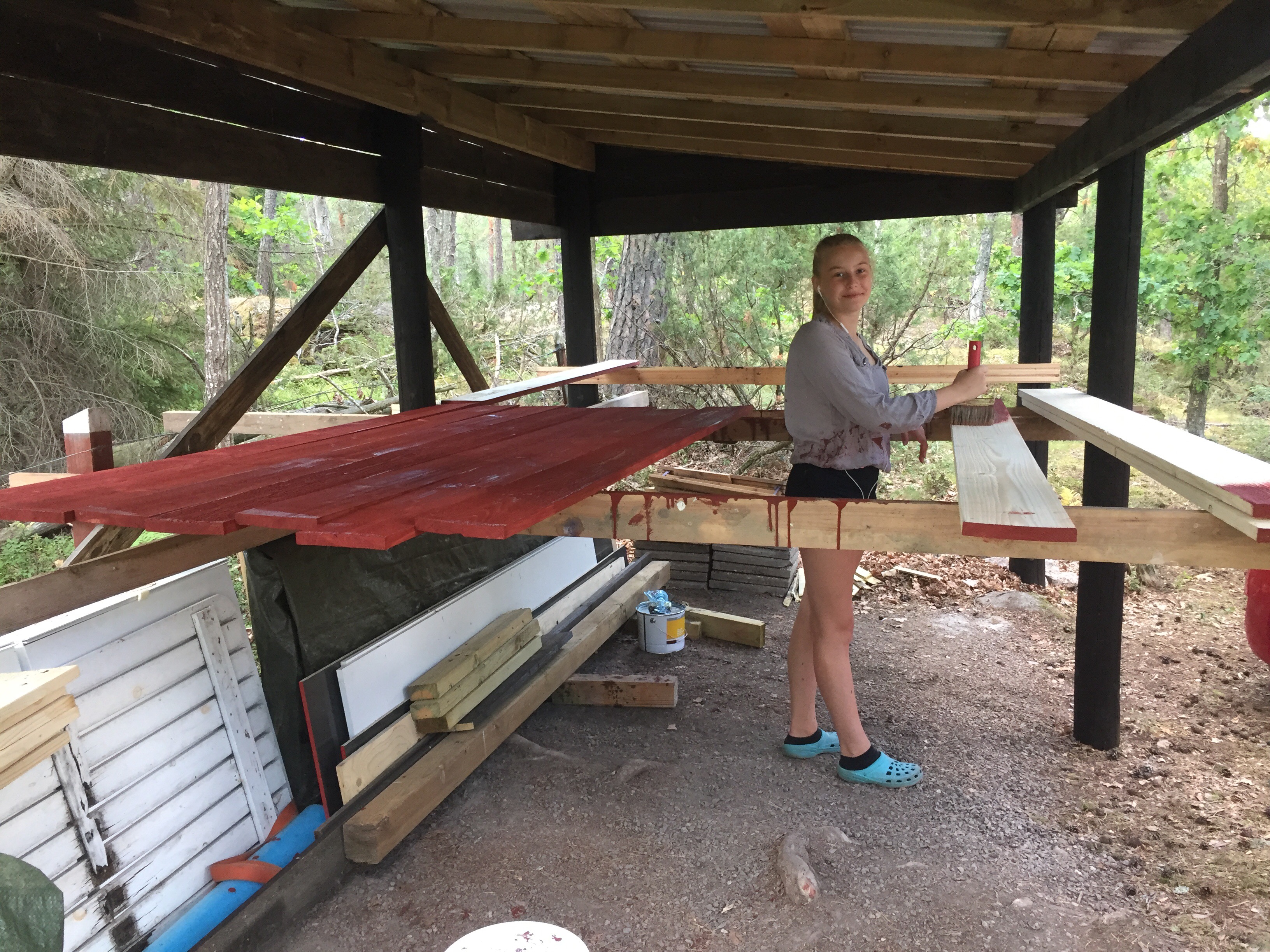 Nu är det dax att få upp planket, målarstudio i fina garaget som var förra årets projekt. Tove var riktigt duktig på att hjälpa till med både målning och att sätta upp plank!