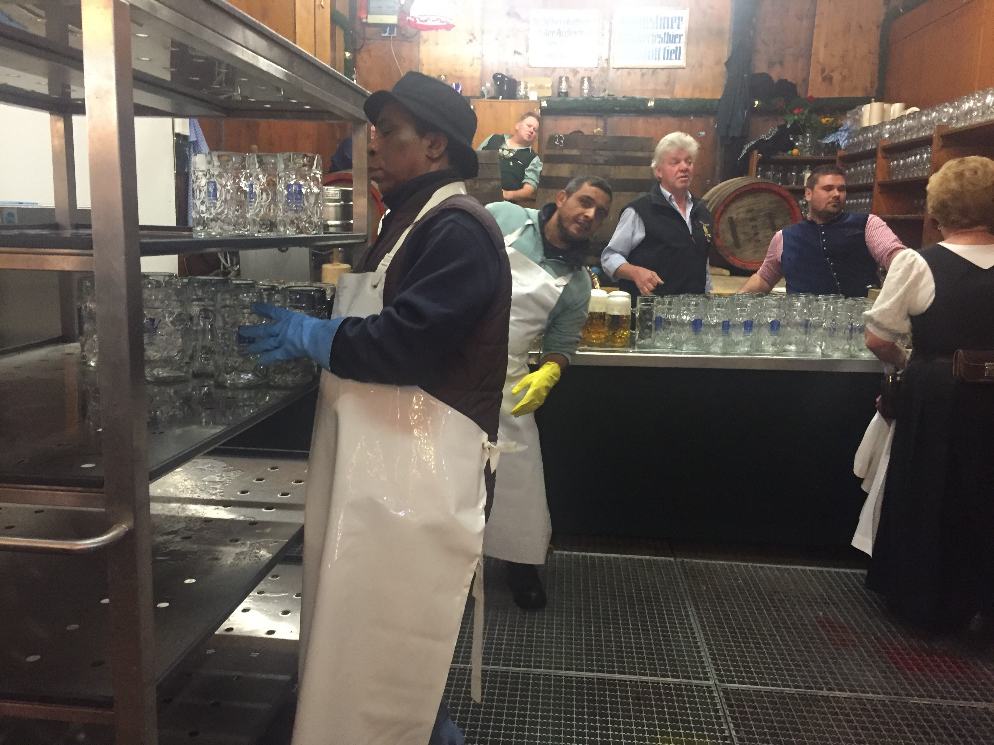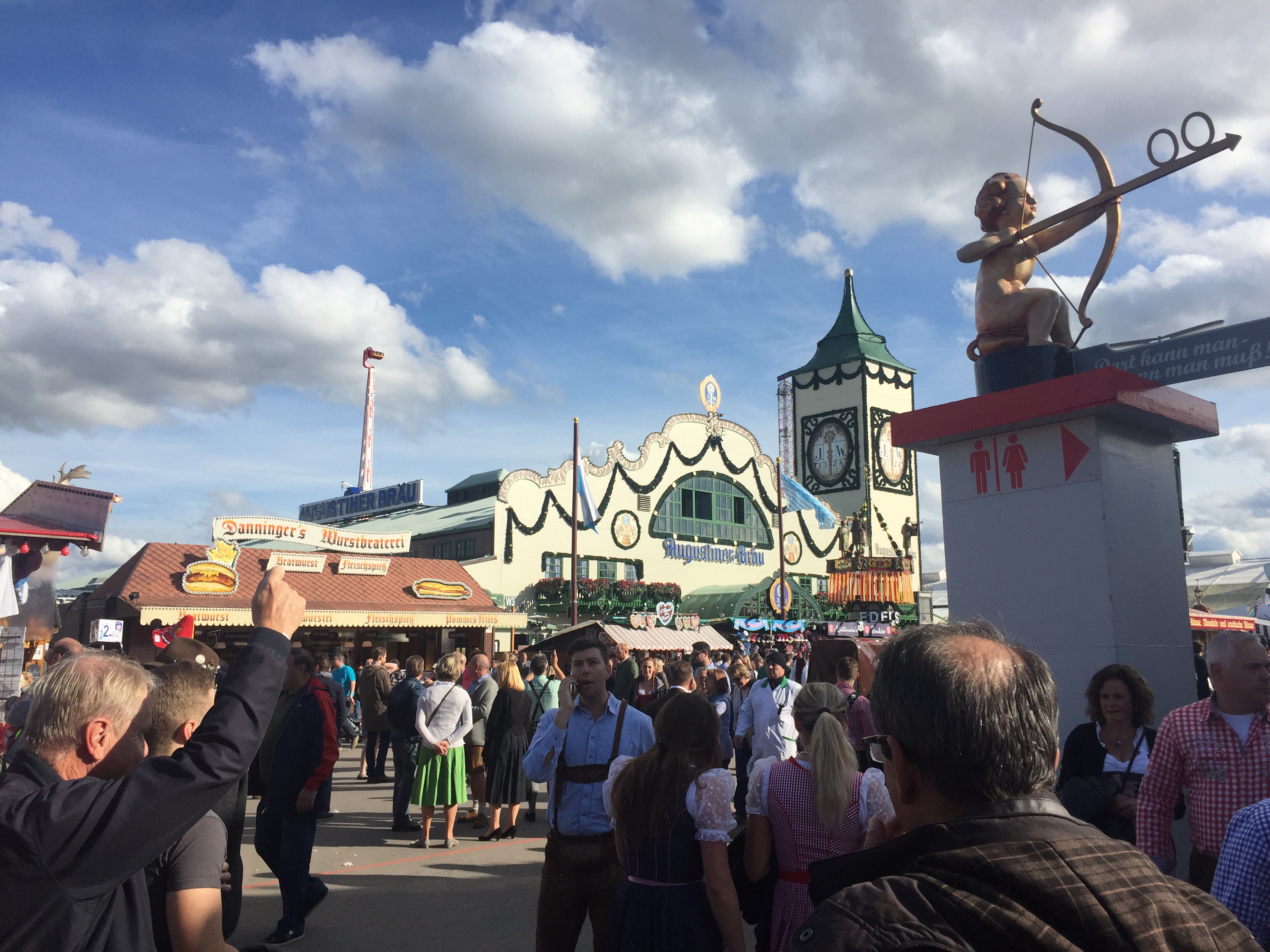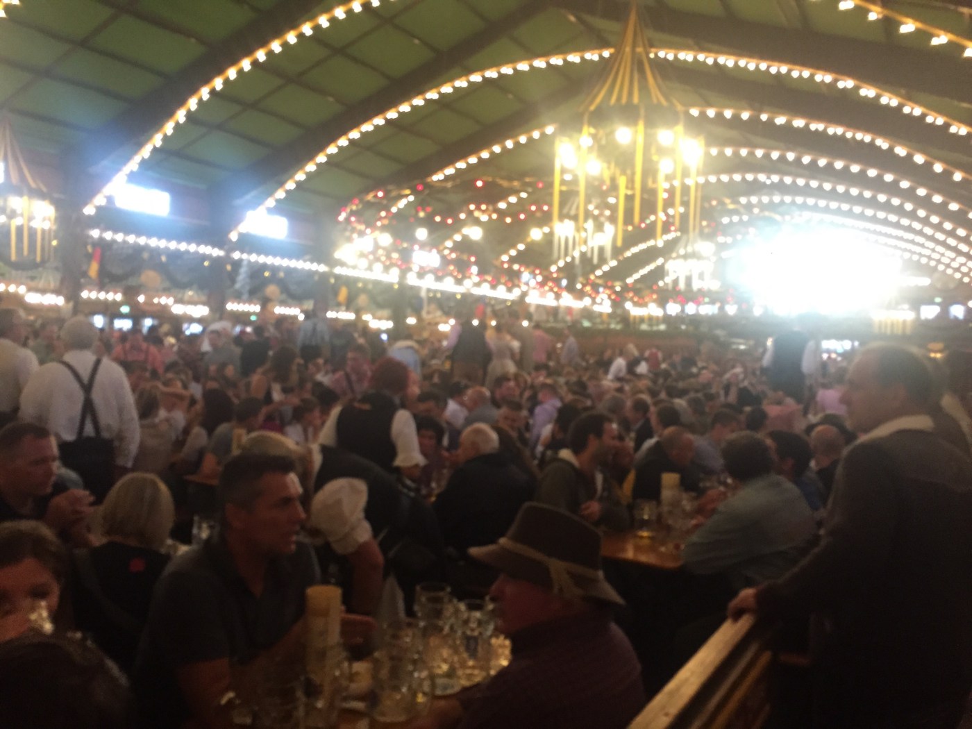 Måndagkväll och framme vid området. Vi hade bord bokade i Augustiner Bräu tältet. Det hade som sagt plats för ca 6 000 personer men det var inte det största tältet, det tältet tog nästan in 10 000 personer!