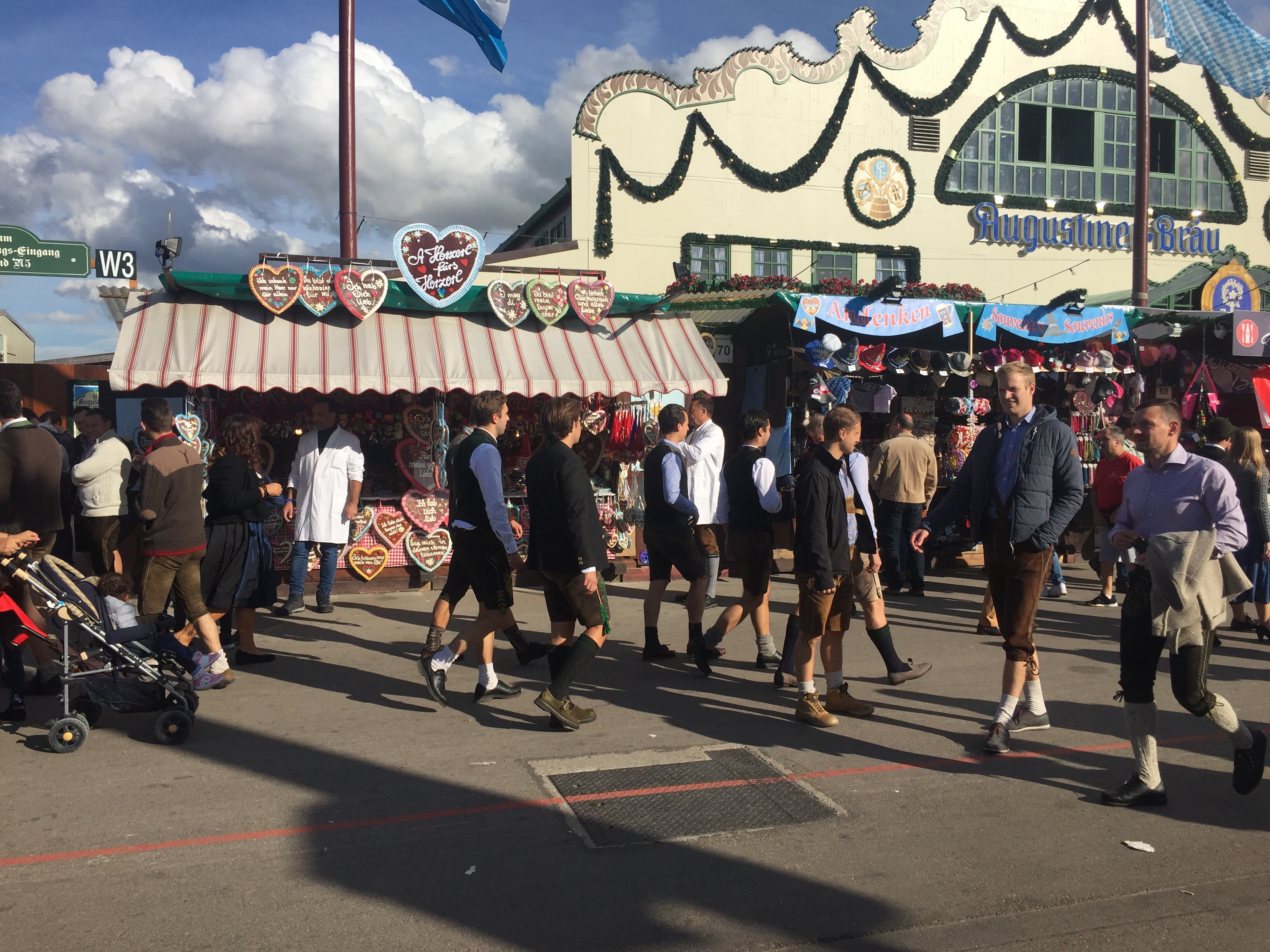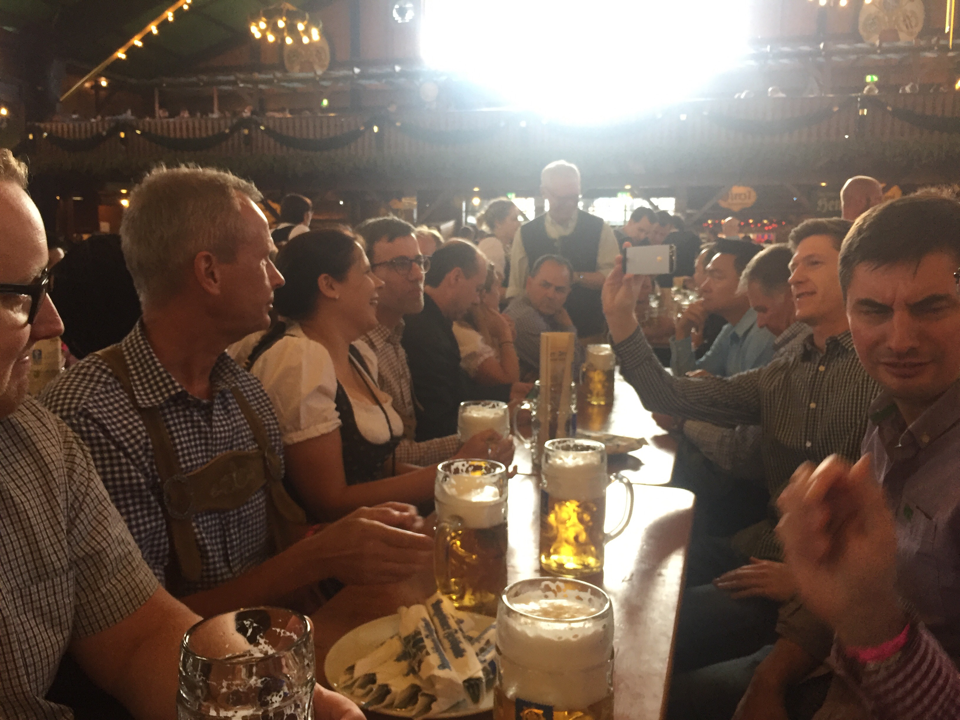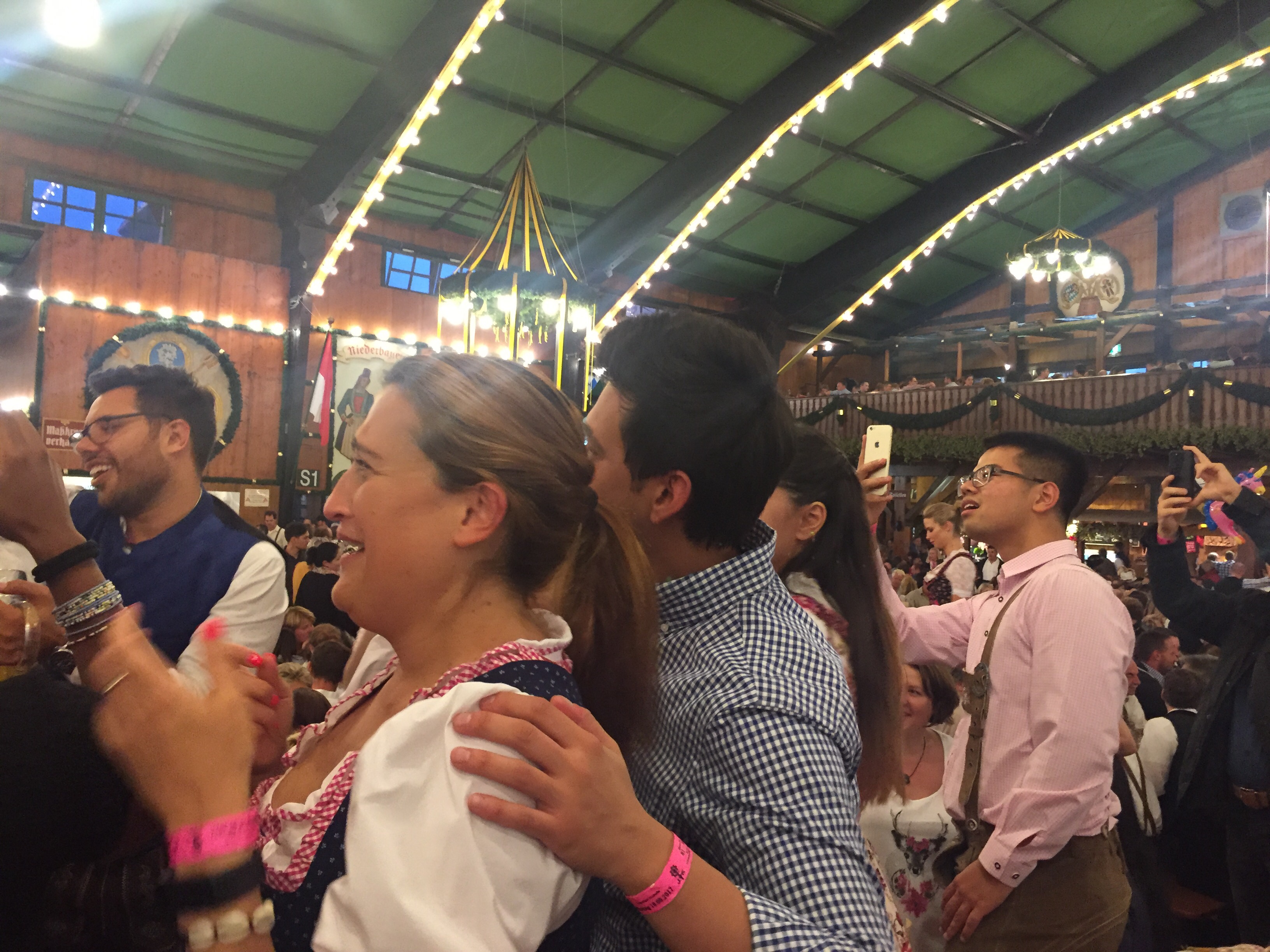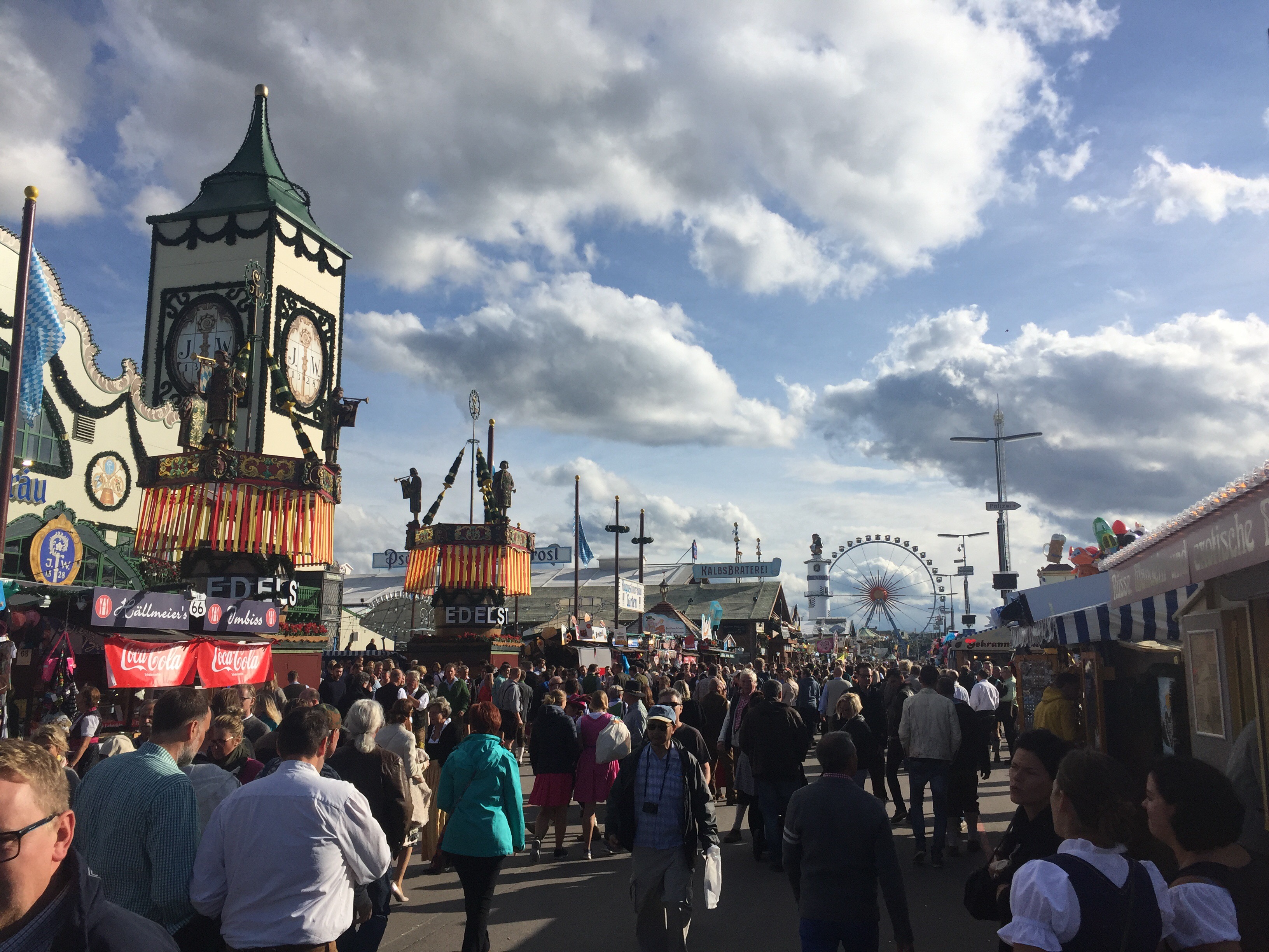 På måndagskvällen fick vi möjlighet att gå med på Oktoberfest. Jag har aldrig tidigare varit där, så riktigt kul att få uppleva det. Vi var ca 40 personer från oss, det betyder två bord bokade i ett tält för 6 000 personer! Omg, första timmen satt jag bara och stirrade på alla människor klädda i lederhosen och bajerska klänningar… och vilket liv det var där inne! Men efter en öl (1L) kändes allt väldigt gemütlich (…det gjorde det inte dan efter apropå survival week😒).