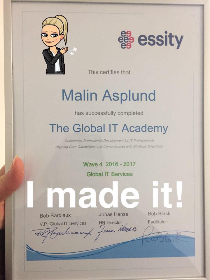 Jag har under ca 1,5 år gått på en intern IT Akademi-utbildning. Vi har varit en grupp på 10 personer från hela världen, från Shanghai till Mexico faktiskt, som har träffats vid 4 tillfällen, 1 vecka per gång, utspridd över hela perioden. Den här veckan har vi varit i München, sista träffen och graduation time! Det har, som vår CIO Office chef sa, en riktig survival week på flera plan (!) men också väldigt rolig och lärorik.