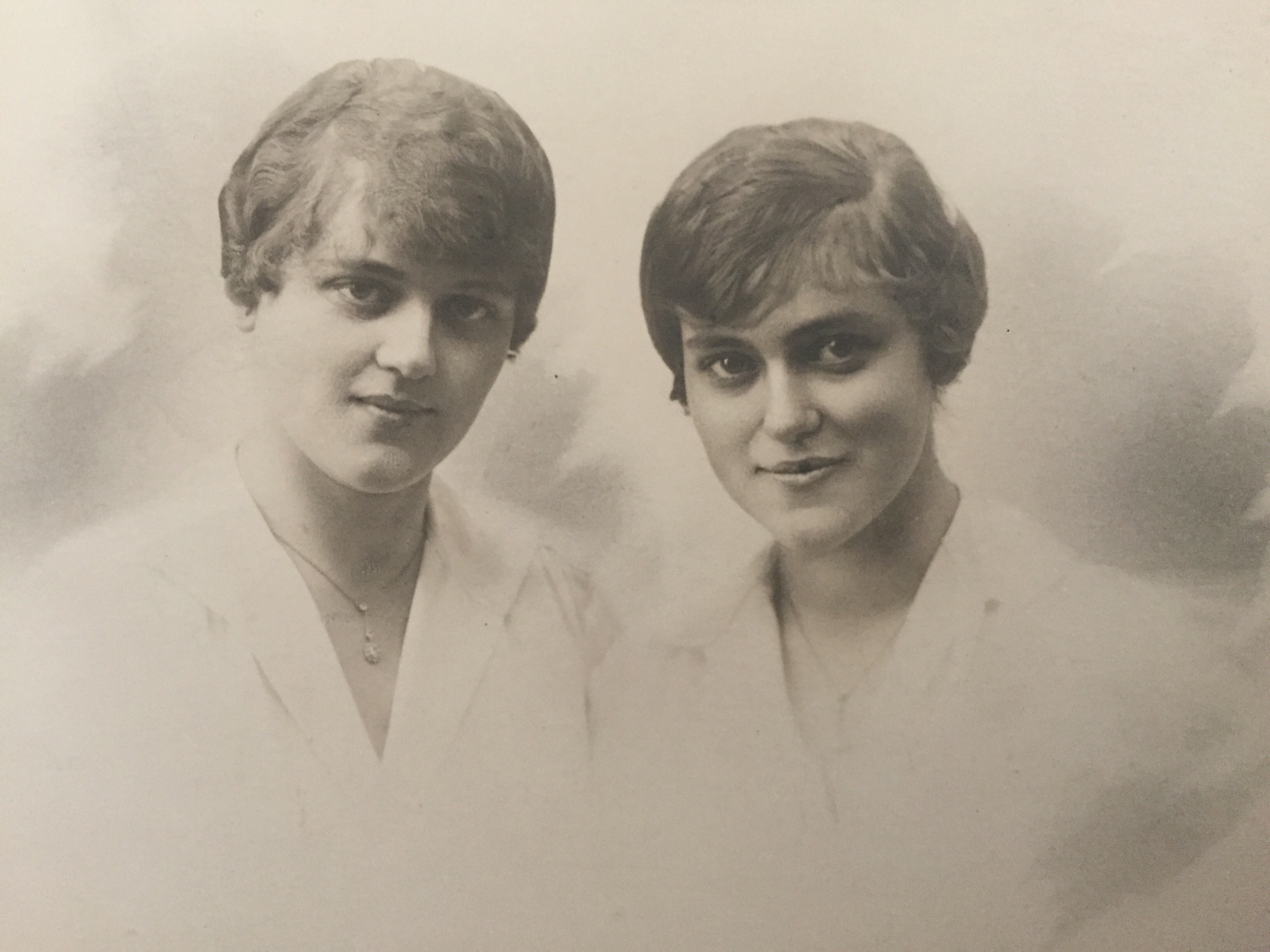 Systrarna Elsa och mormor Greta. Mamma berättade att pappa Axel INTE var glad över att systrarna hade klippt av sig sitt långa hår!
