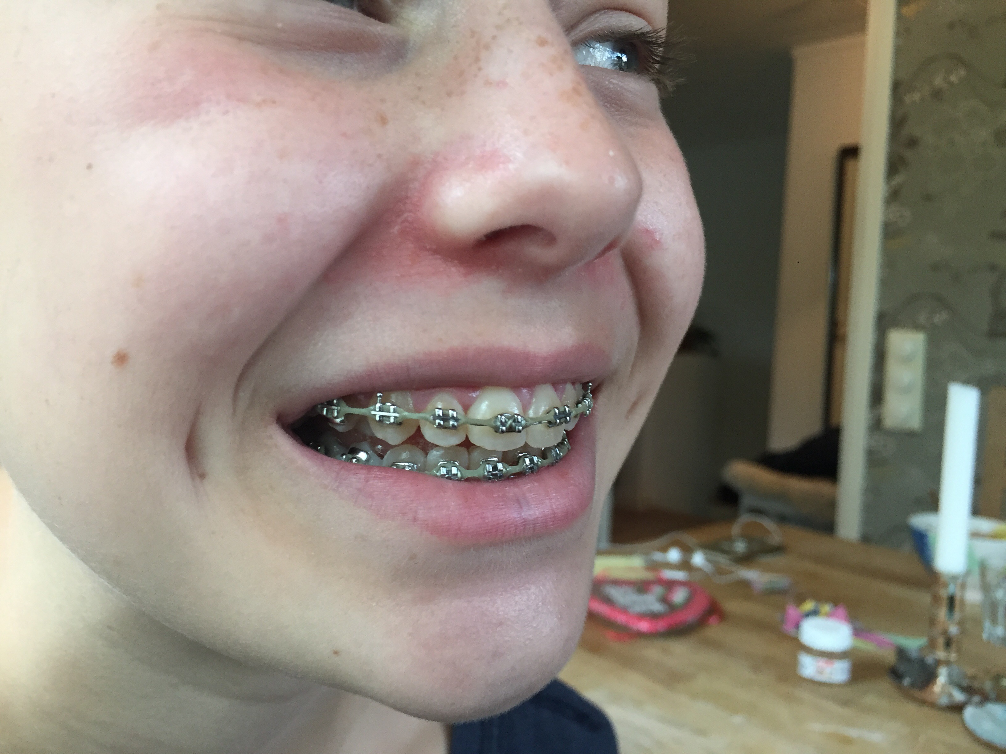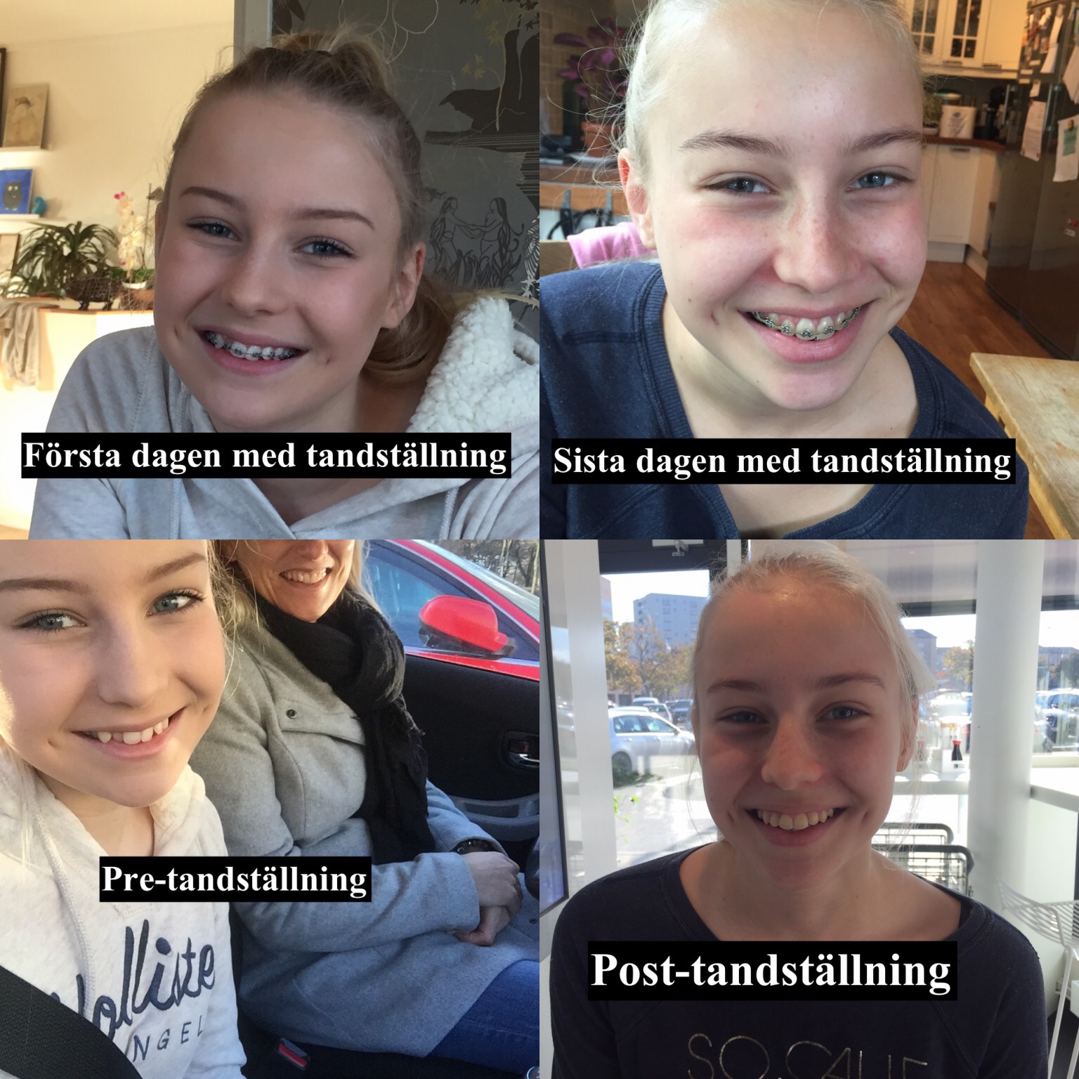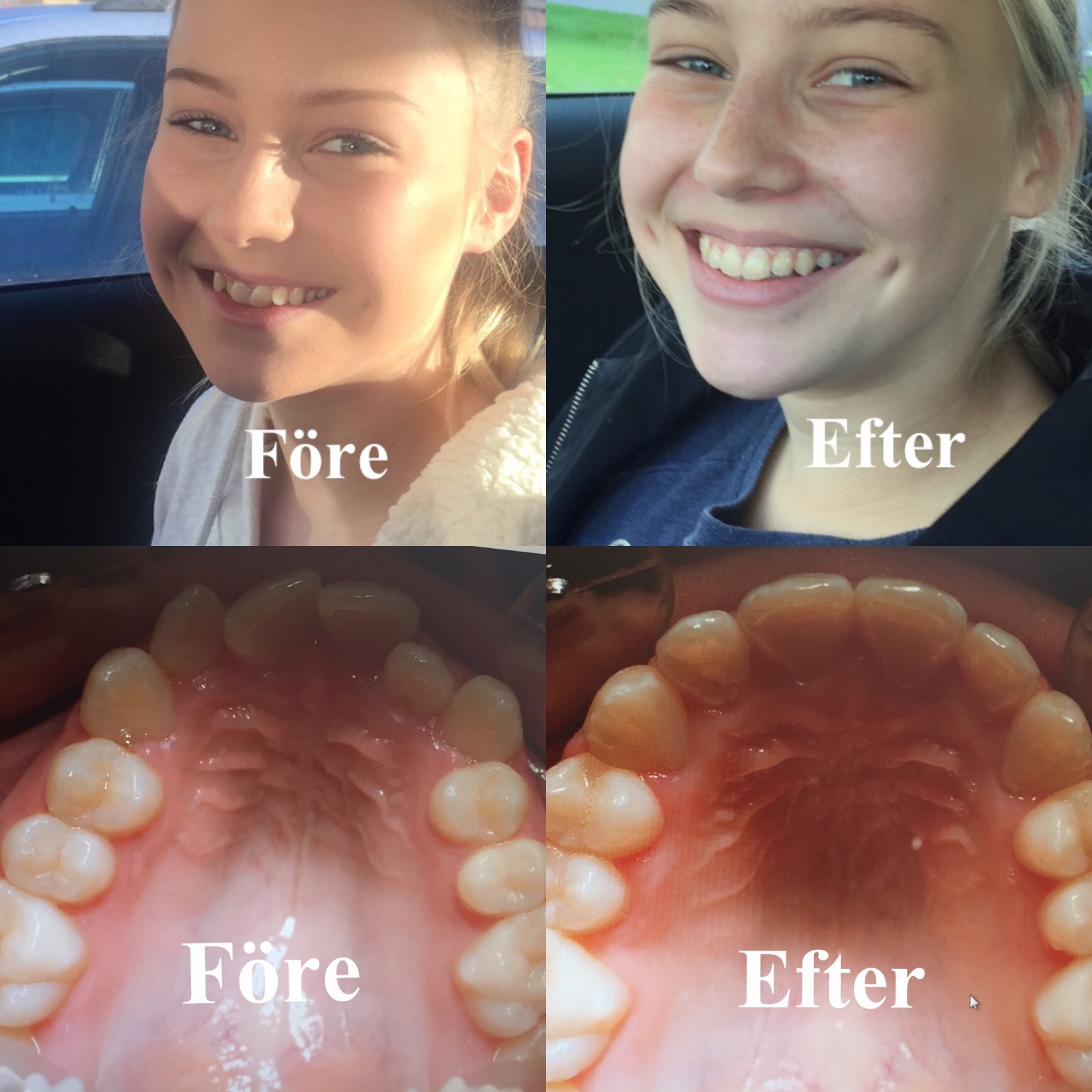 Idag åkte Tove och jag till Farsta för att ta ut tandställningen. Det har inte riktigt gått ett år sedan hon fick den, men hon har varit så duktig och skött sig exemplariskt så hon fick faktiskt ta ut den lite tidigare än planerat. Här kommer lite före- och efterbilder.
