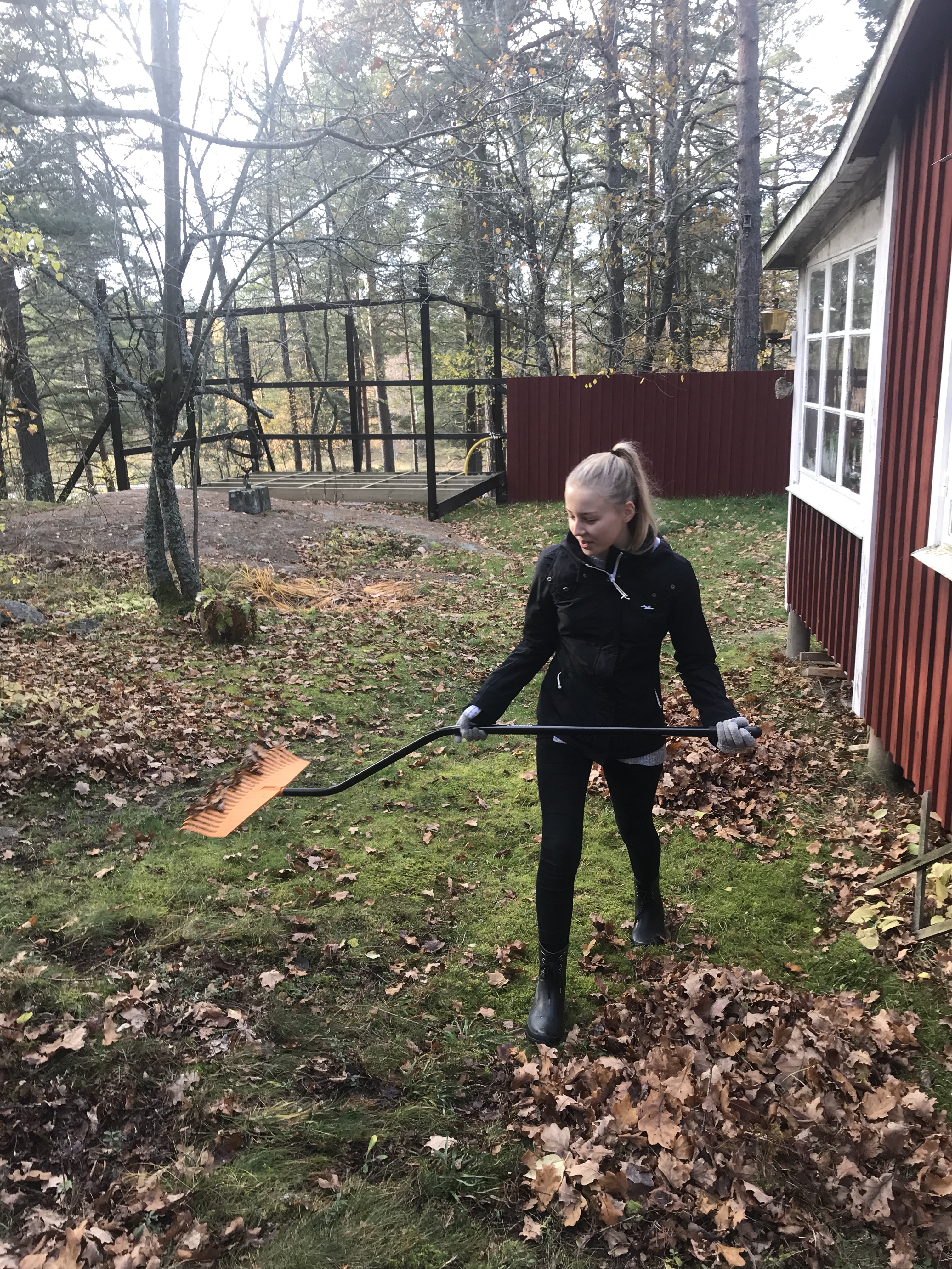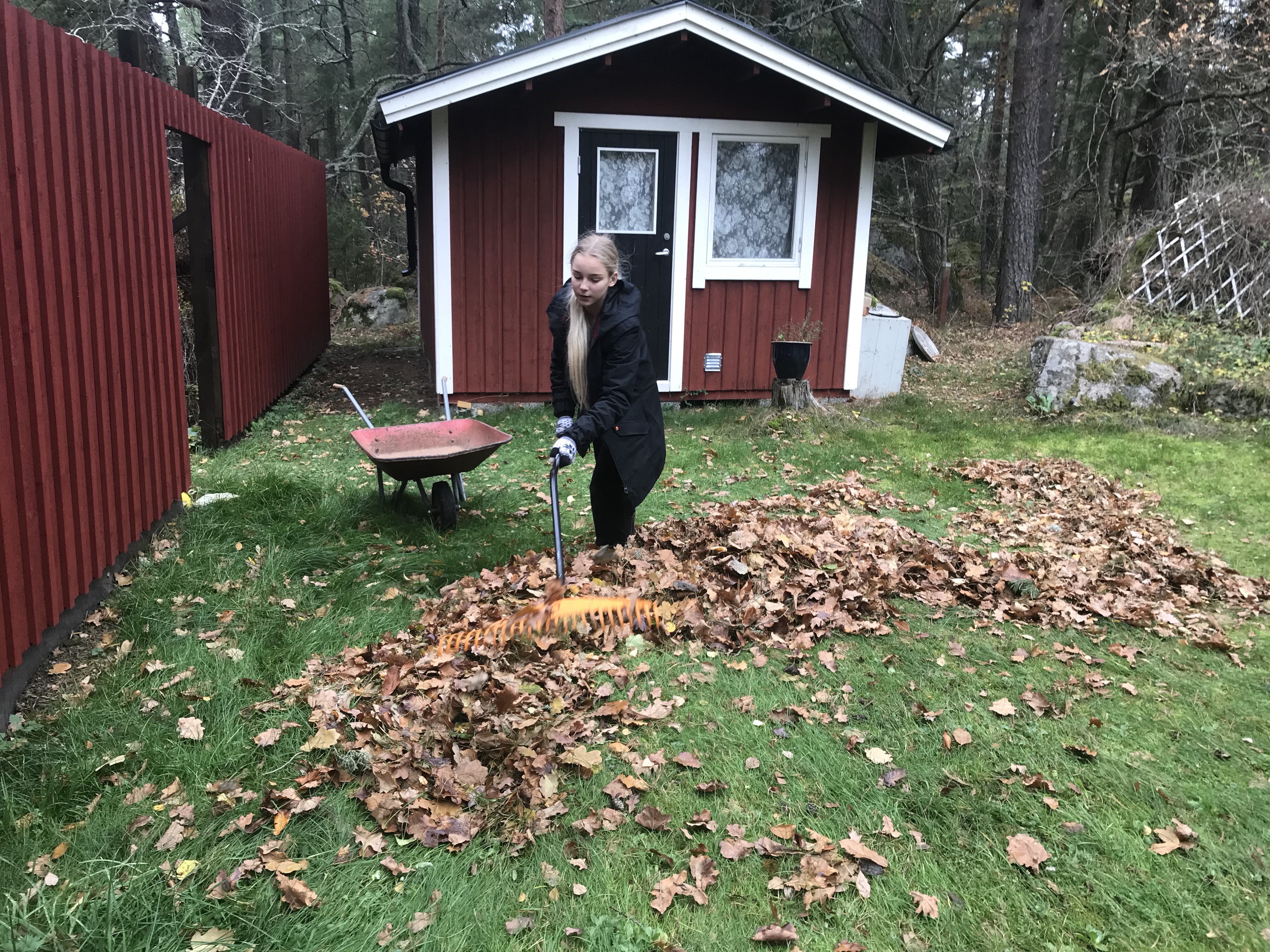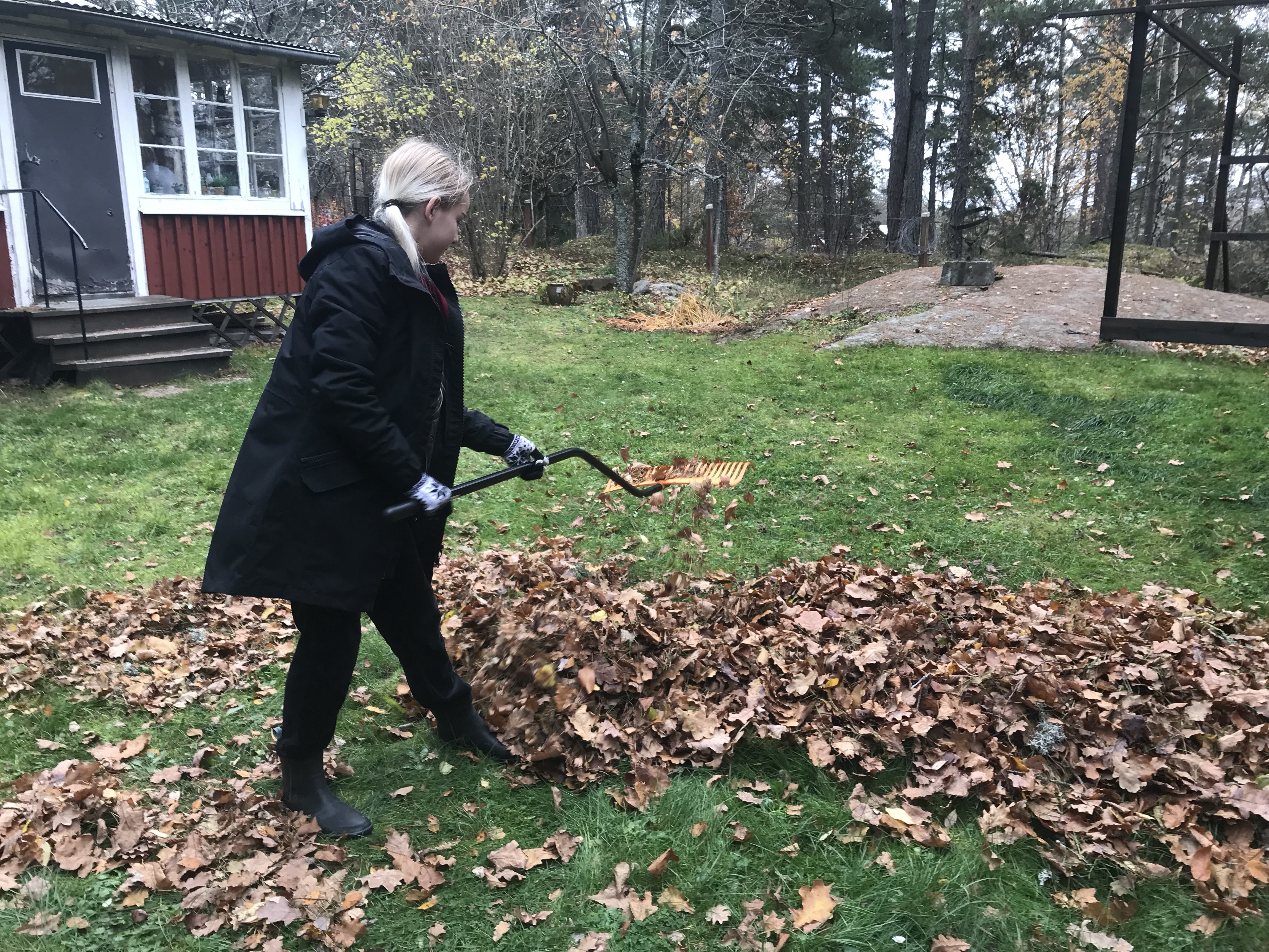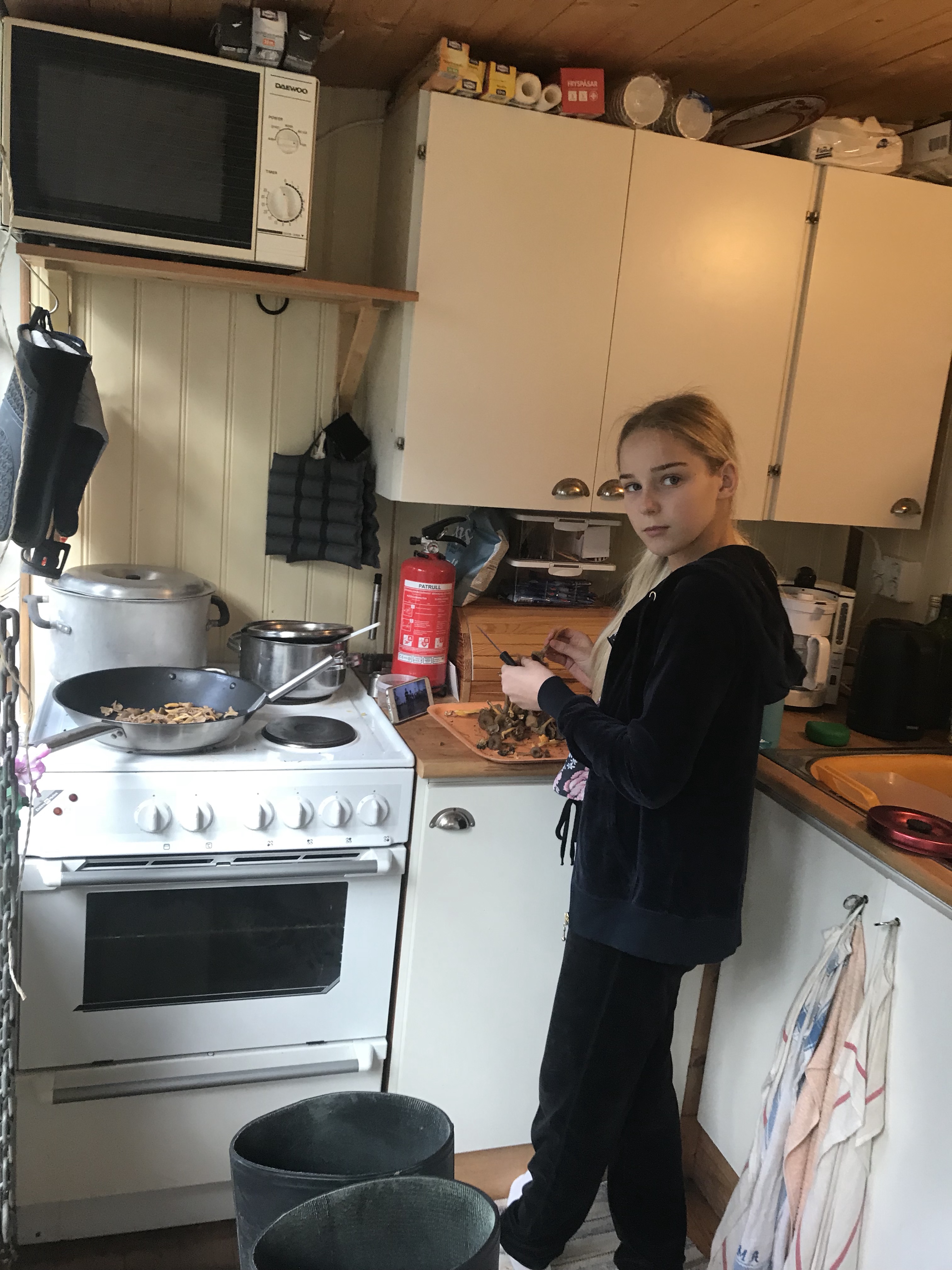 Lördag På lördagen åkte Magnus och hämtade Berra på morgonen och vi rensade och stekte svamp och krattade trädgården.