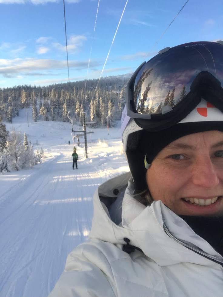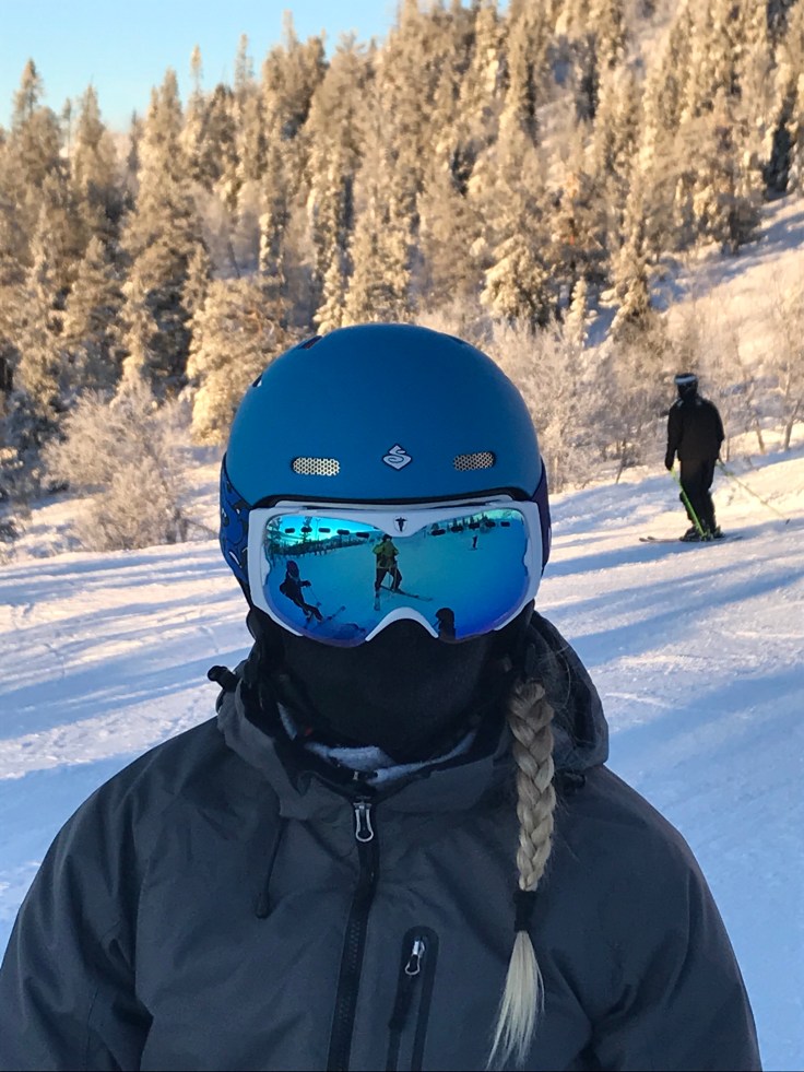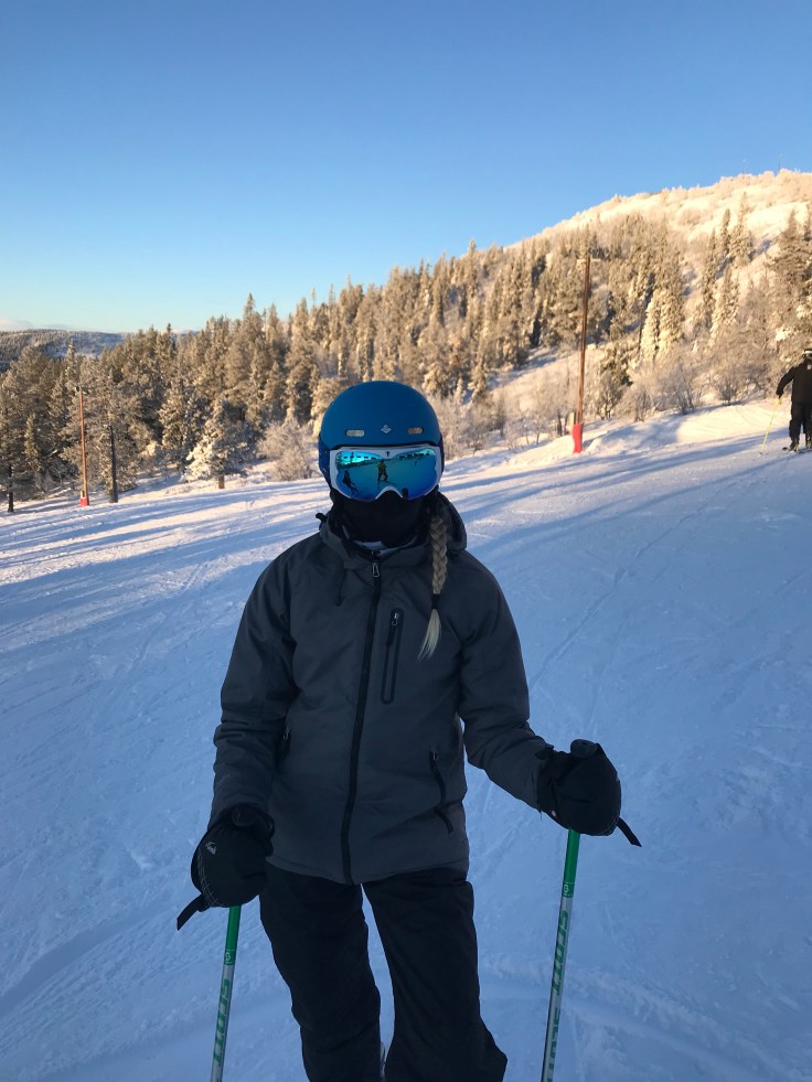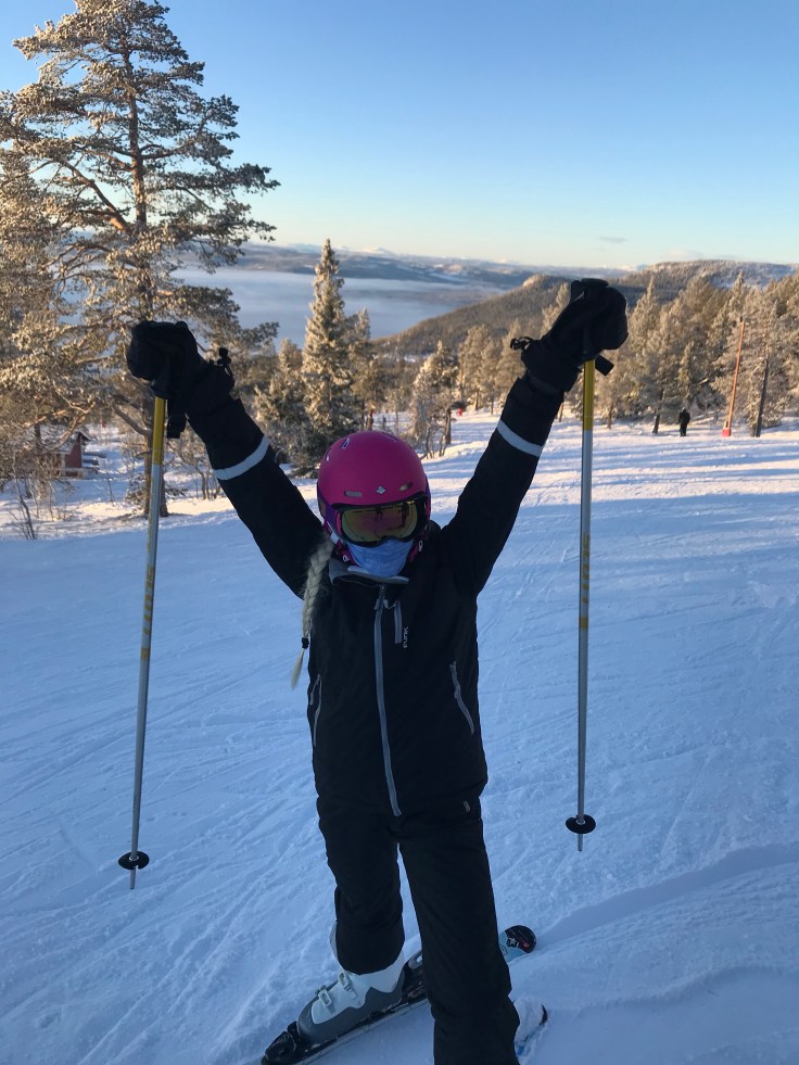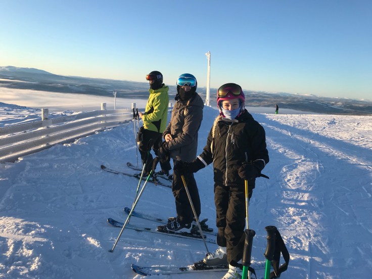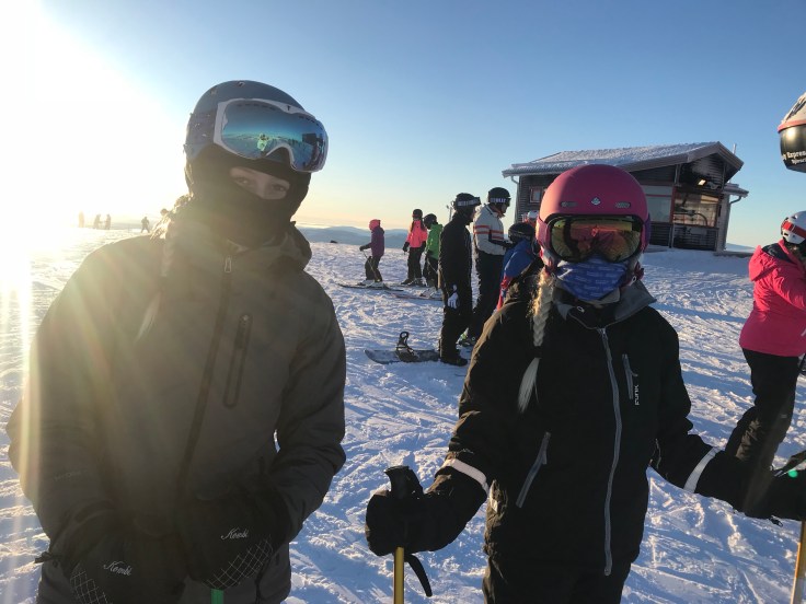På lördagen hade vi strålande solsken, -10 grader kallt och hur mycket snö som helst! Så denna första skiddag åkte vi över till Björnrike. Uppe på toppen tog vi några fina bilder i det fina vädret🌞