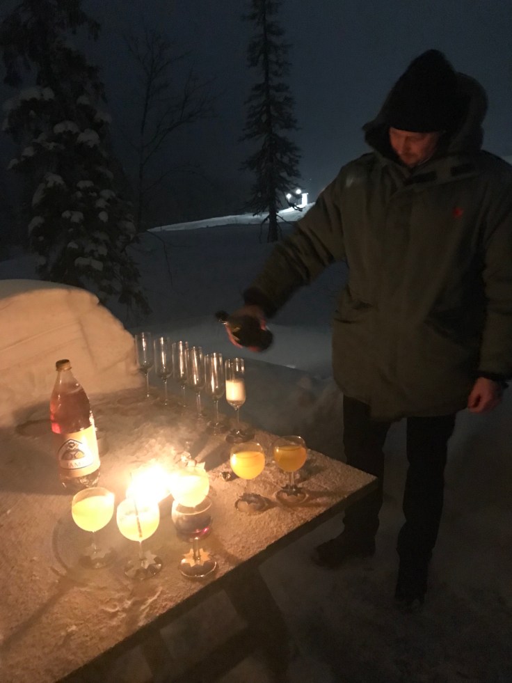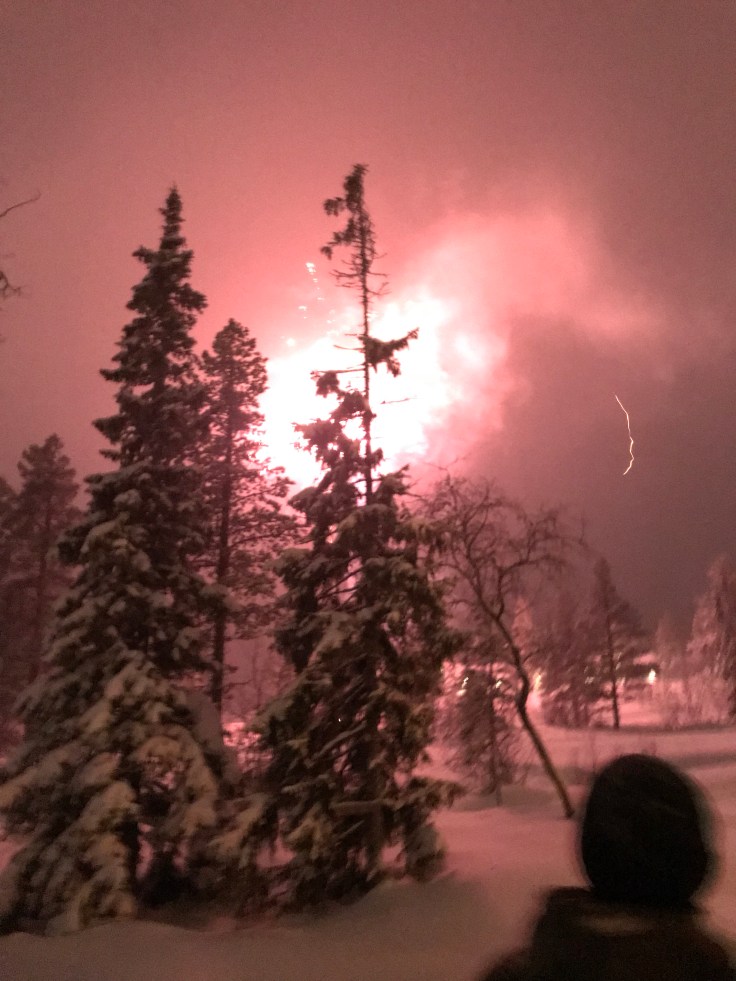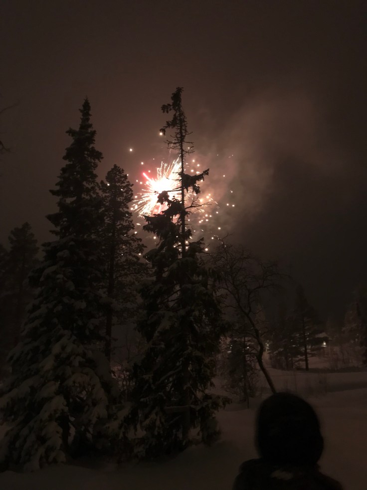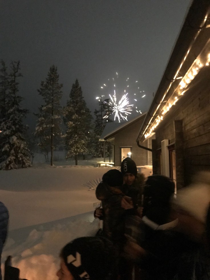 Vid tolvslaget var vi ute och skålade och tittade på fyrverkerierna.