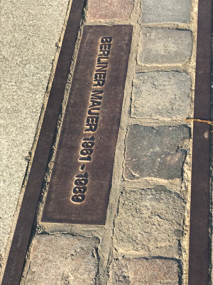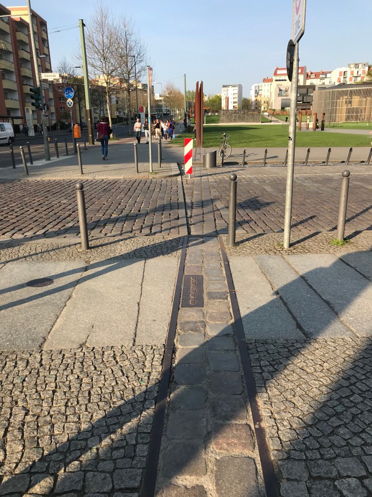 Markering i gatan som visar var Berlinmuren stod.