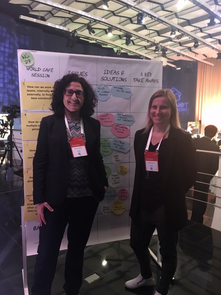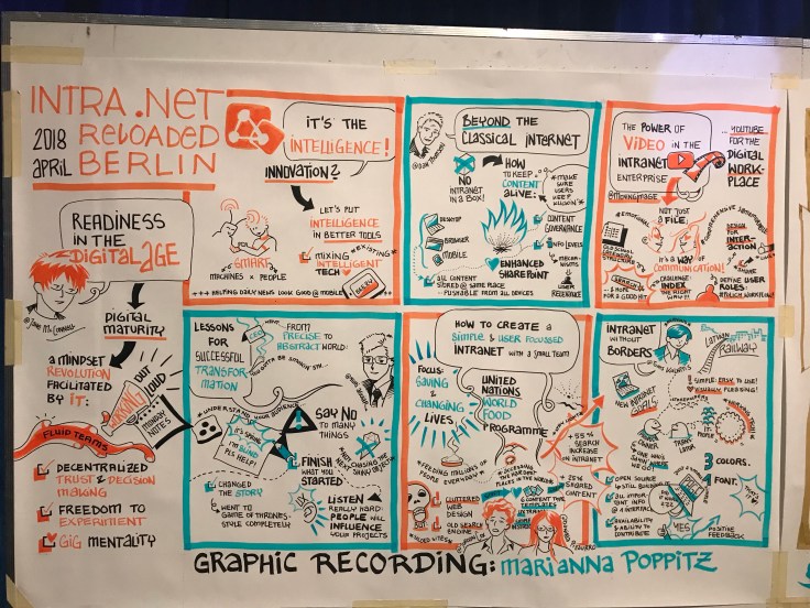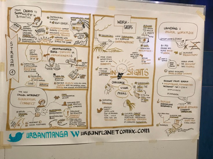 Det här är en kul grej dom har på den här konferensen. Under båda dagarna står det en tjej och ritar illustrationer om det talarna pratar om på scenen, ganska coolt!