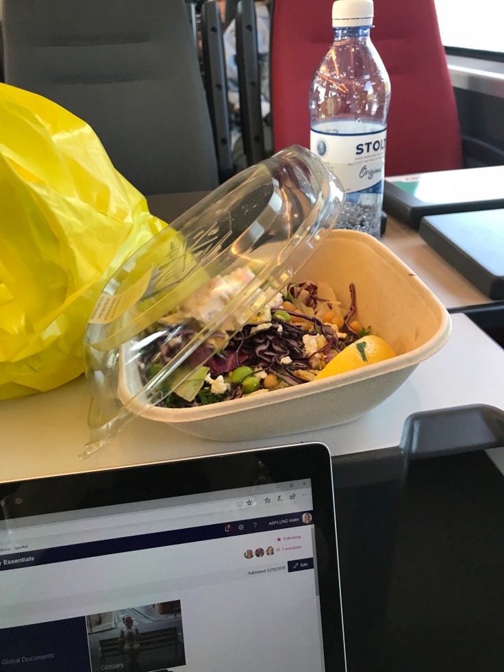 Äta med fingrarna eller inte alls, i-landsproblem när man glömmer be om bestick och ska åka tåg i 3 timmar😒 Men om man är inne på slow eating så är detta the skit, I tell you😏 En soyaböna, en liten bit kyckling, ett salladsblad…