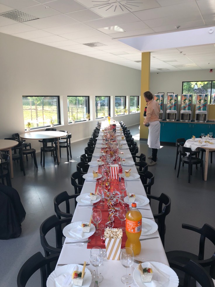 Uppdukat inför middagen med Hollywood-tema. Tove hade gjort fina ”placeringskort” vid varje plats (som tyvärr inte syns här och ingen hade tänkt på att fota dom när som stod samlade här hemma☹️) på filmstjärnor och …