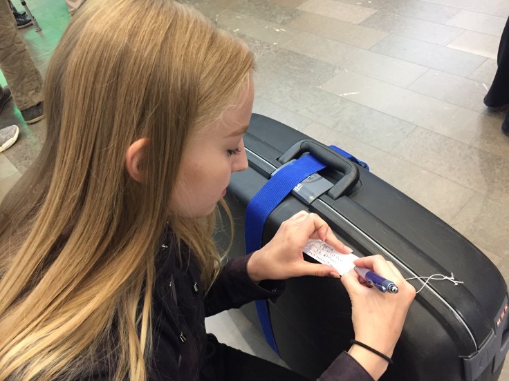 Namnlapp pĂ„ bagaget mĂ„ste man ju ha! InnehĂ„llet Ă€r noga utvalt och planerat för att klara eventuellt shoppingvikt som kan tillkomma pĂ„ hemresanđ Hon har varit jĂ€tteduktig pĂ„ att fĂ„ ihop allt och jag tror hon brĂ„s pĂ„ sin pappa nĂ€r hon planerar noga för alla eventualiteter som kan förekomma.