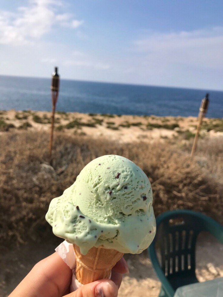 Strandpromenad med glasstopp.