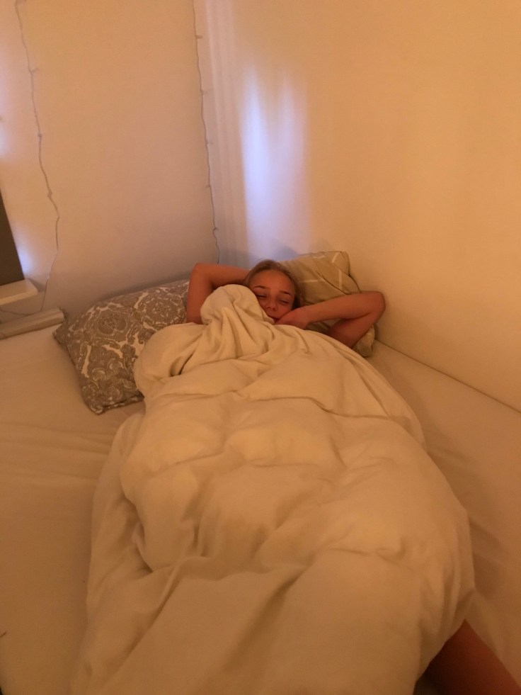 Trött sommarlovstjej som sov(?) nÀr vi kom in och sjöng.