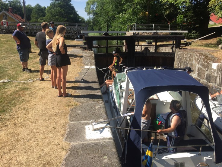 Den här slussen är helt manuell så det var lite intressant att se hur det går till.