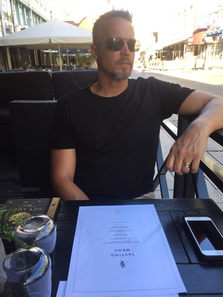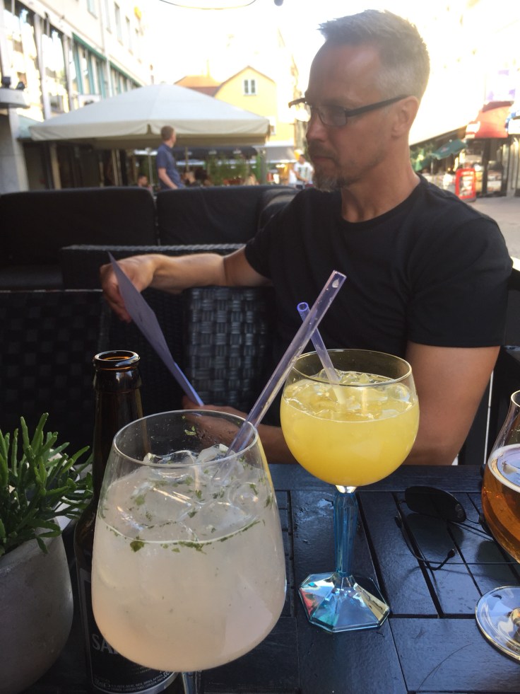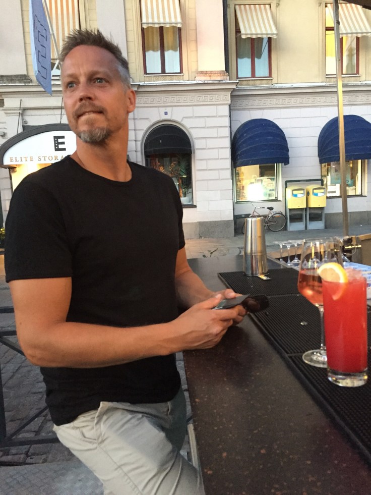 När vi hade ätit klart ville tjejerna röra på sig, så dom gick och hämtade moppen och åkte hem. Vi hade en timme att invänta bussen på, så då blev det ett stopp på vägen på Stora torget, Magnus tog en drink och jag ett glas Rosé.