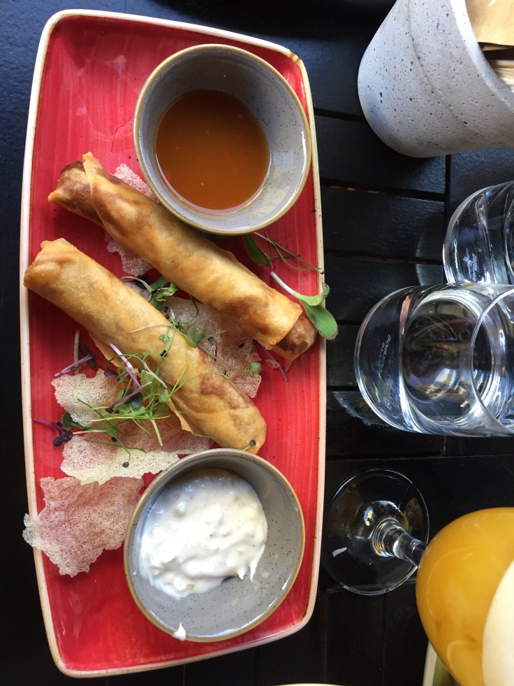 Svamp och fikonfylld vårrulle.