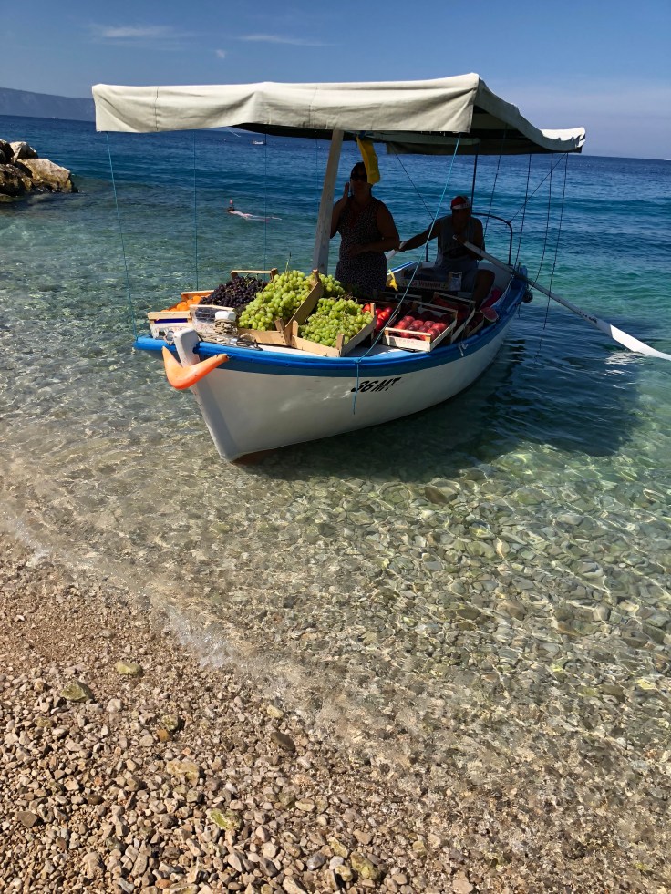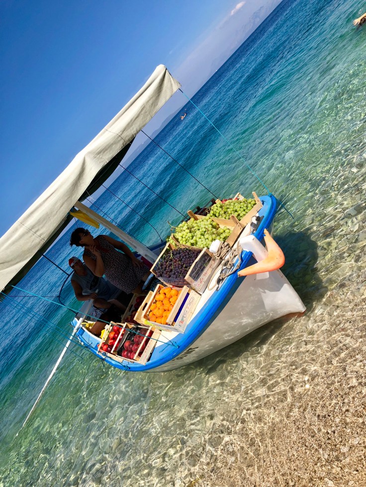 När vi låg där kom det en båt som sålde frukt. Vi hade inga pengar med oss men det såg väldigt gott ut!