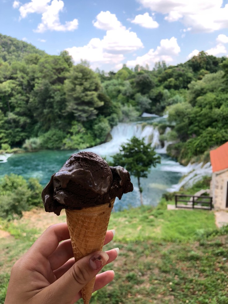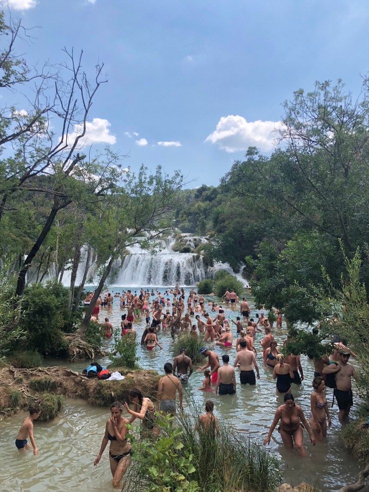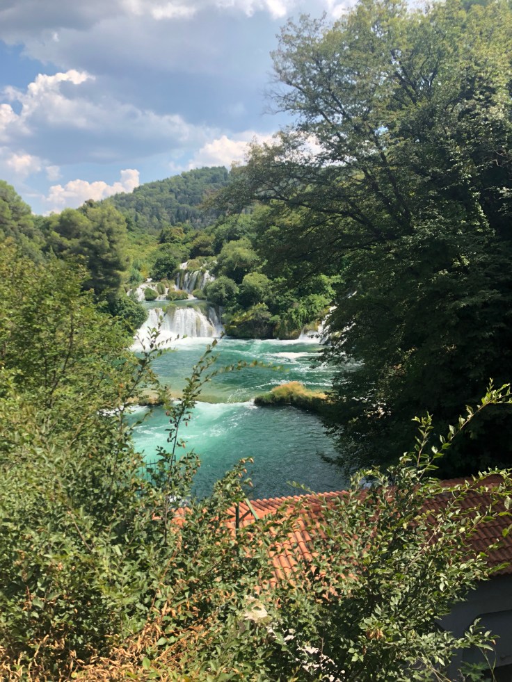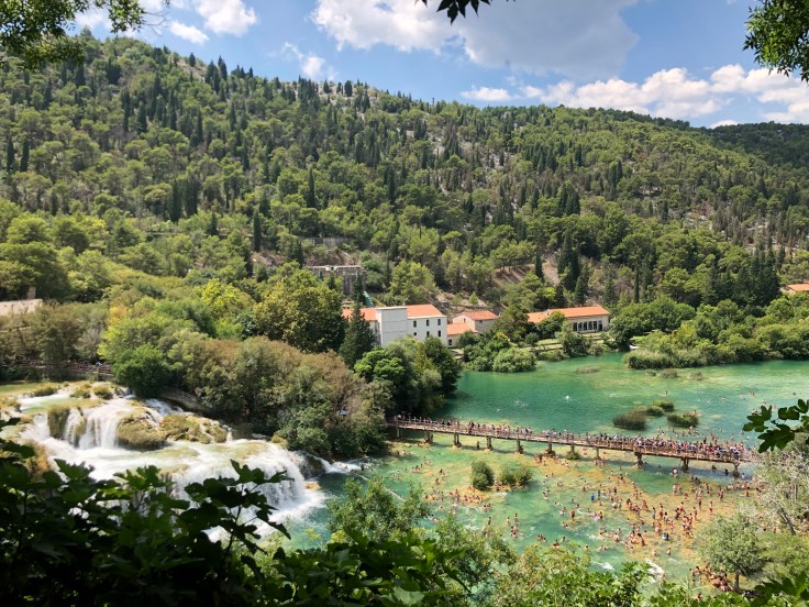 Nu har vi hyrt bil och tänkte åka på ett par dagsutflykter. Dag 1 åker vi till nationalparken Krka som ligger ca 1,5 h norrut. Jättefint ställe men helt galet mycket besökare och ganska dyrt, ca 900 SEK för oss fyra för att gå in. Vi tyckte ändå att det var värt besöket.