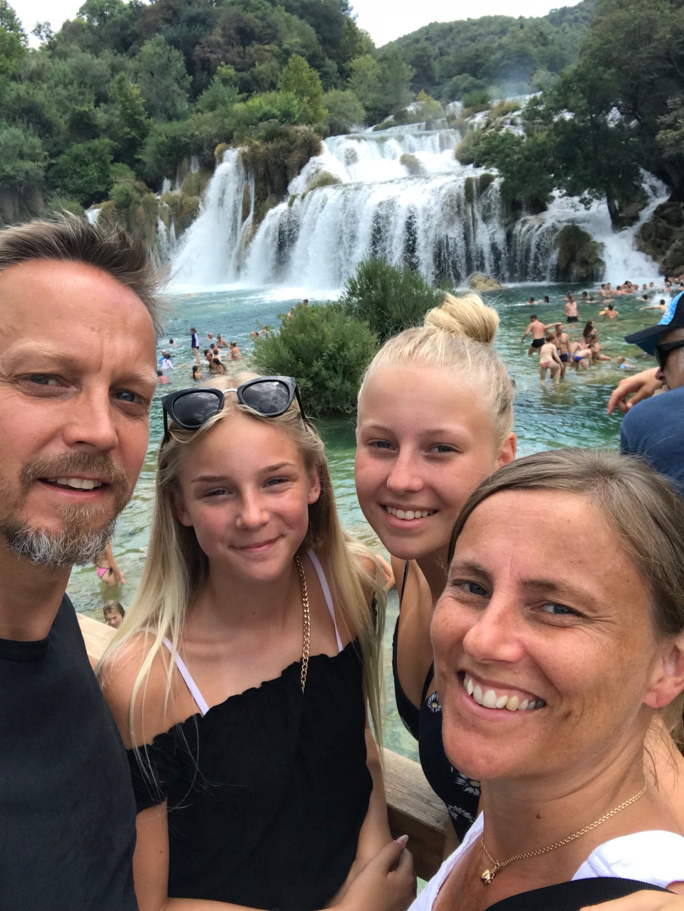 Nu har vi hyrt bil och tänkte åka på ett par dagsutflykter. Dag 1 åker vi till nationalparken Krka som ligger ca 1,5 h norrut. Jättefint ställe men helt galet mycket besökare och ganska dyrt, ca 900 SEK för oss fyra för att gå in. Vi tyckte ändå att det var värt besöket.