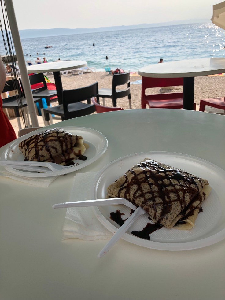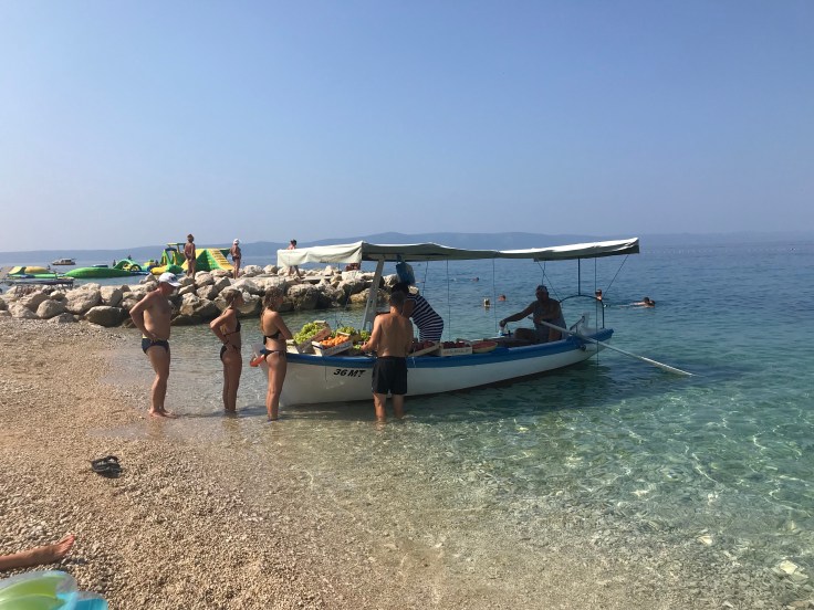 Idag tänkte vi åka ut till öarna utanför Podgora, helst Vis (mest orörd och inspelningsplats för Mamma Mia 2) eller Hvar och Brac. Tyvärr var dessa utflykter fullbokade hos TUI. Vi kollade även andra alternativ men tillslut efter lite familjeråd bestämde vi oss för att strunta i öresa och istället stanna vid vår strand (Vis verkade inte ens möjligt att åka till från Podgora, dit kan man bara åka från Split, om man inte hyr en egen båt förstås).