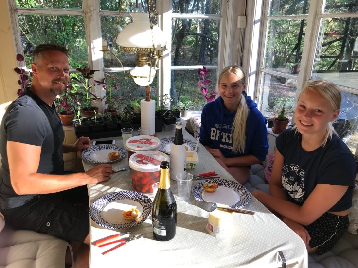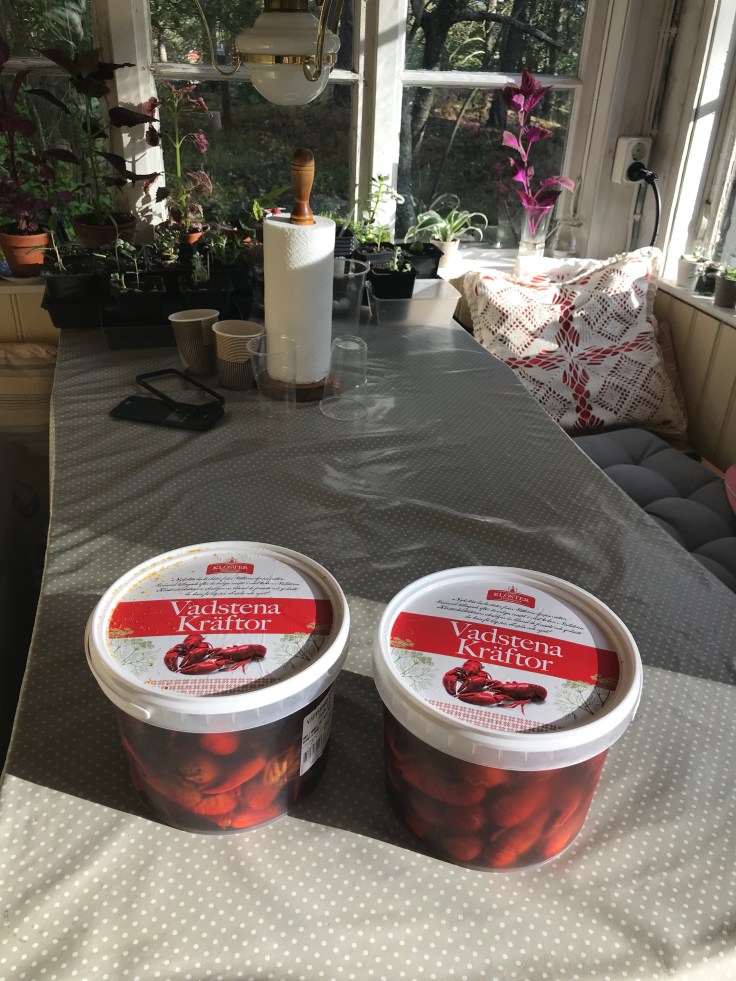 Jag tror det var Ingela & Henrics fel för Henke hade köpt kräftor till Ingela igår och Lina blev så himla sugen så efter lunchen sa hon ”asså, jag har varit såå sugen på kräftor ända sen jag såg bilden Ingela skickade, kan inte vi också äta?” Det kunde vi tydligen🙂