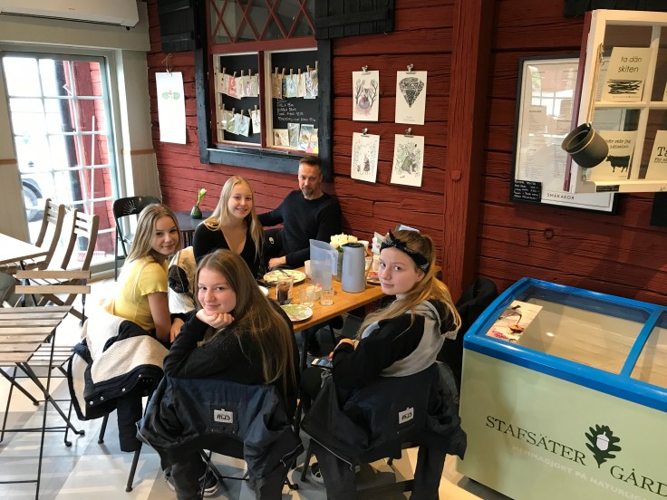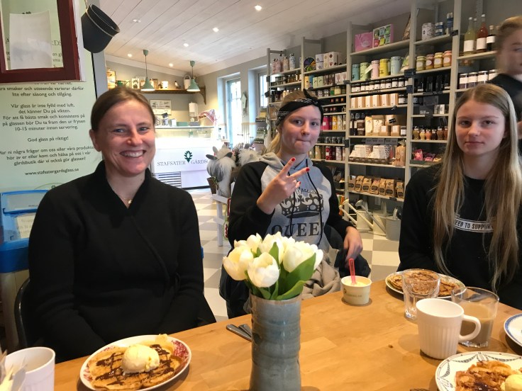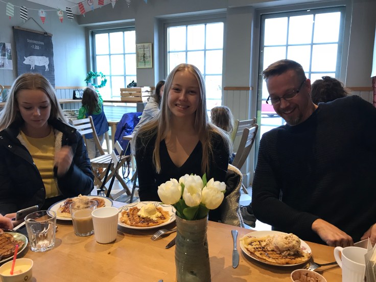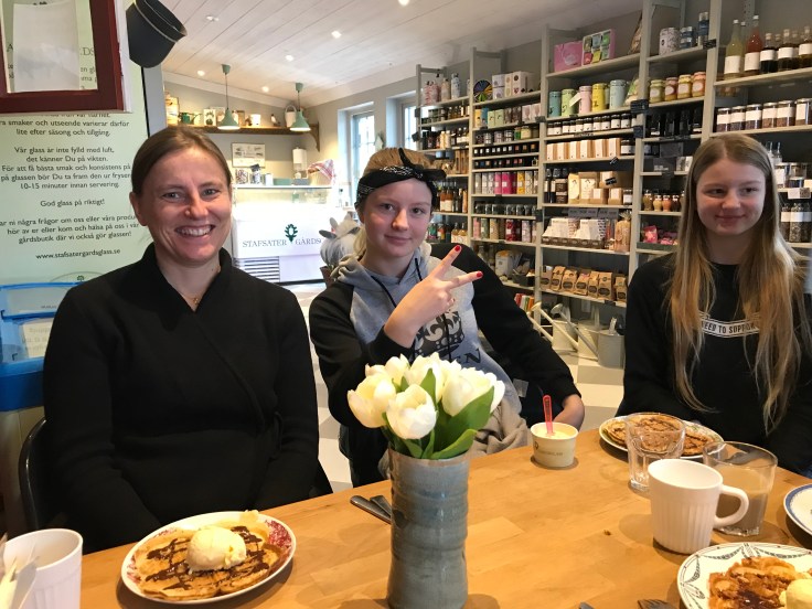 På fredagen hämtade vi upp kusinerna och åkte till vårt favoritfik, Stafsäter gårdsglass, där de då och då har våffeldagar. Denna dag är just en sådan dag, och det är första gången jag har lyckats pricka in det😊✌️! För mig blev det våffla med gräddglass och smält mörk Malmöchokladsås, och kaffe till det, jättegott!