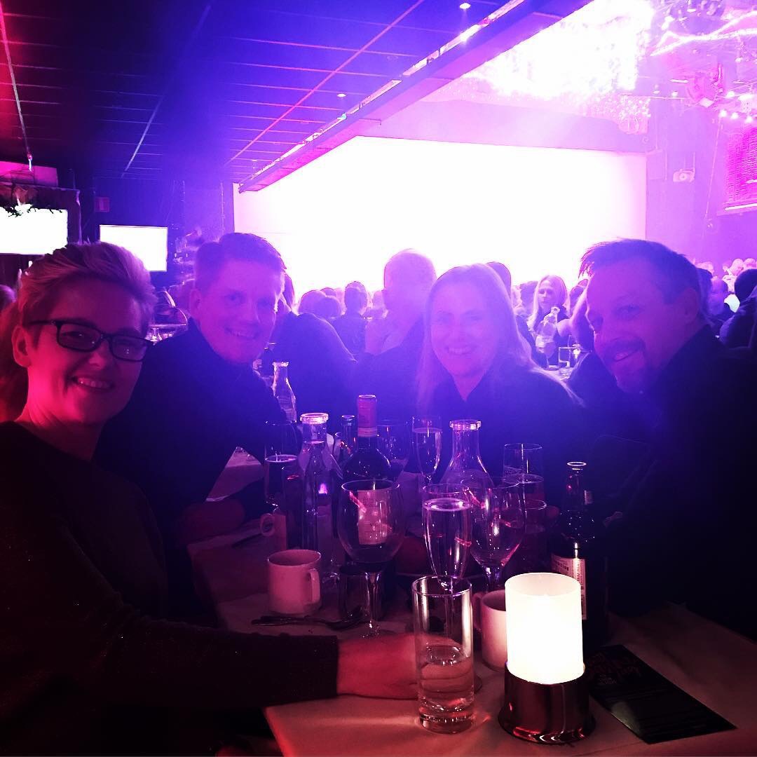 Sen träffade vi Tommy o Jennie på plats på Hamburgerbörs. Vid bordet i väntan på middag och show.