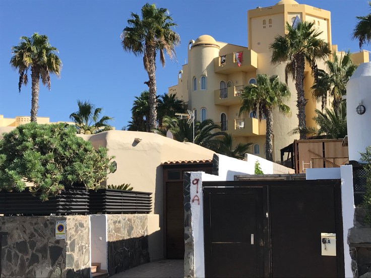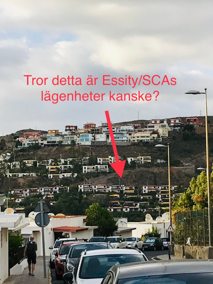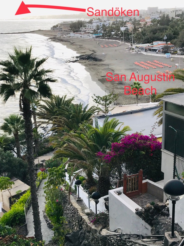 Efter lunch blev det lite molnigt så då passade vi på att gå en promenad mot San Augustin för att se var Essity/SCA-bungalows låg.