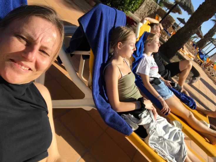 Sen hittade vi några solstolar i läplats och satte oss och solade en stund trots att vi inte hade hunnit byta om till badkläder än, så härligt med lite sol och värme!