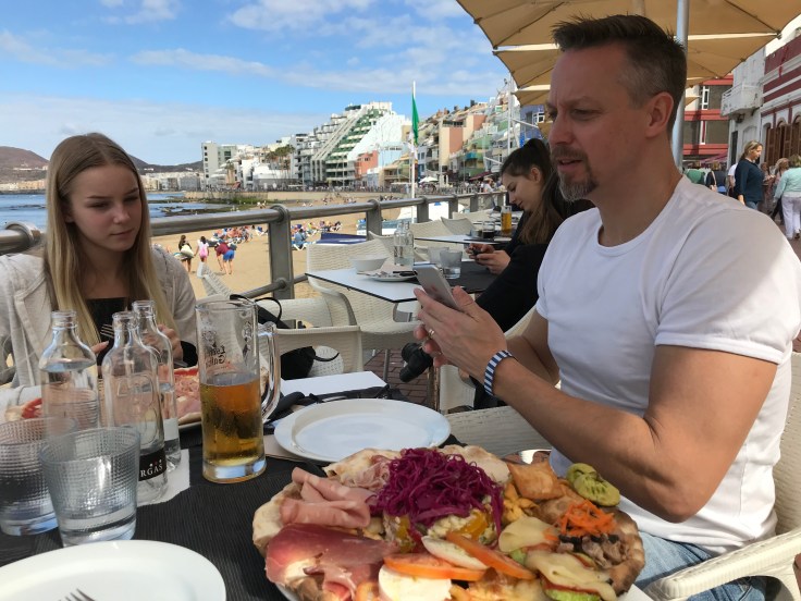 Lite molnigt idag, enligt väderappen skulle det till och med regna en stund. Ingen dag för stranden med andra ord så vi drog till storstan på ön, dvs Las Palmas.
