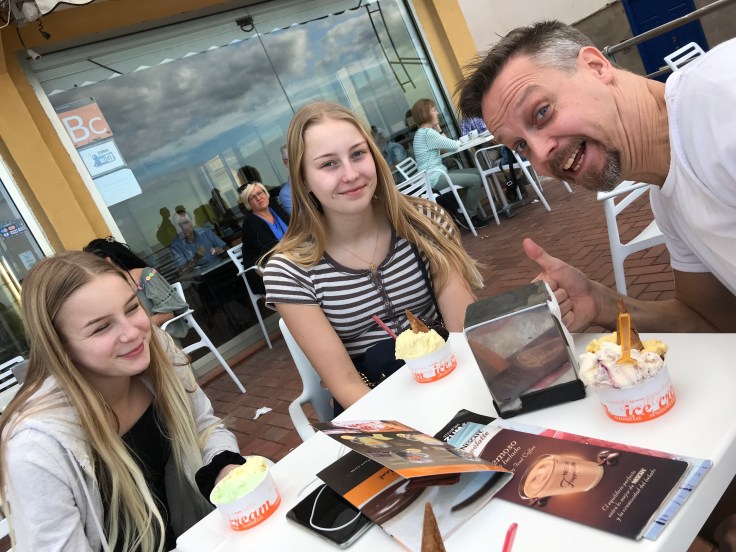 På vägen tillbaka stannade vi och drack kaffe och varm choklad och så åt vi glass till det!
